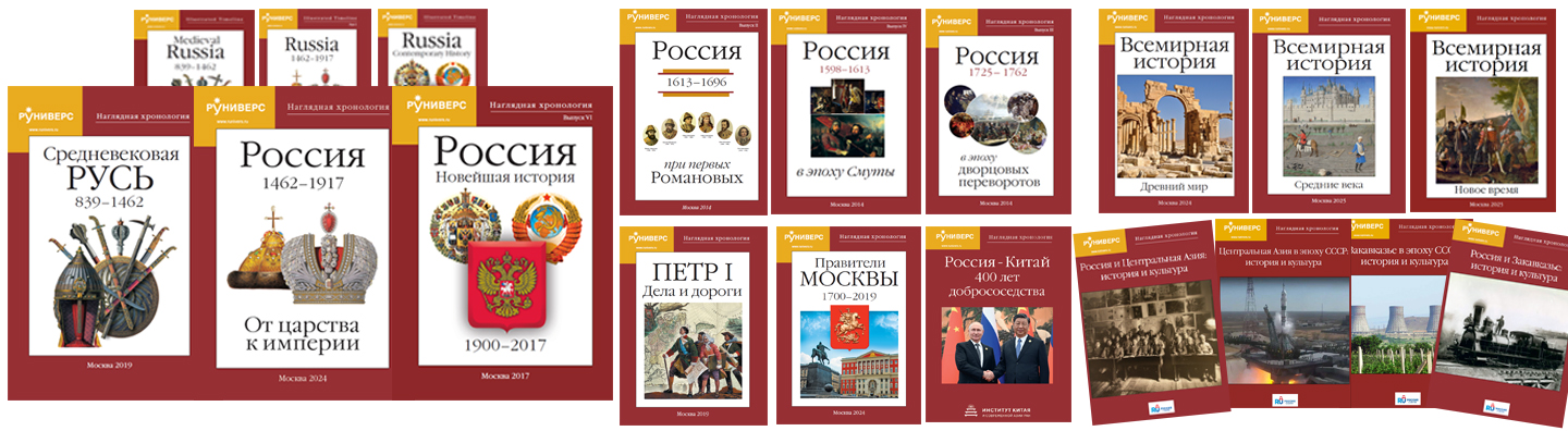 «Наглядная хронология» – это новый иллюстрированный формат представления исторических событий и процессов на «ленте времени». Наши издания отображает историю России непрерывно на протяжении более одиннадцати веков – от начала эпохи Средневековой ...