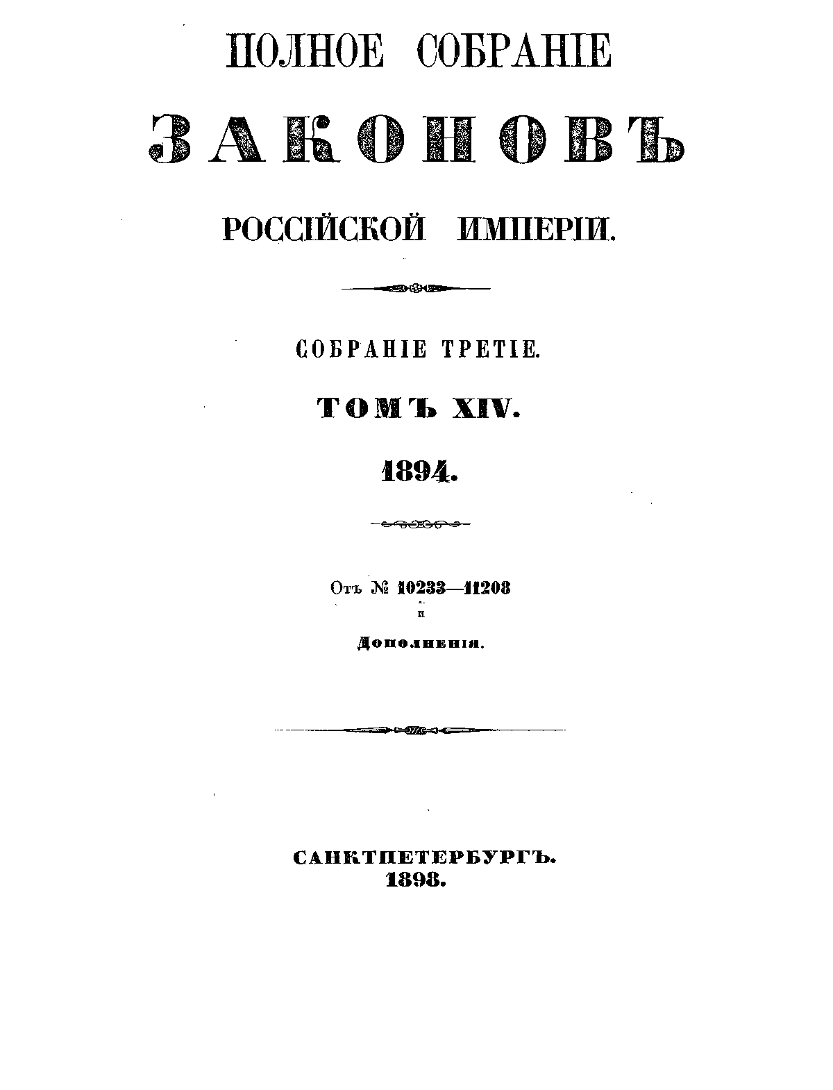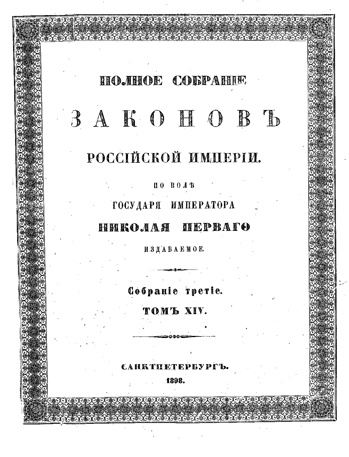 Полное собрание законов Российской Империи. Собрание Третье. Том XIV