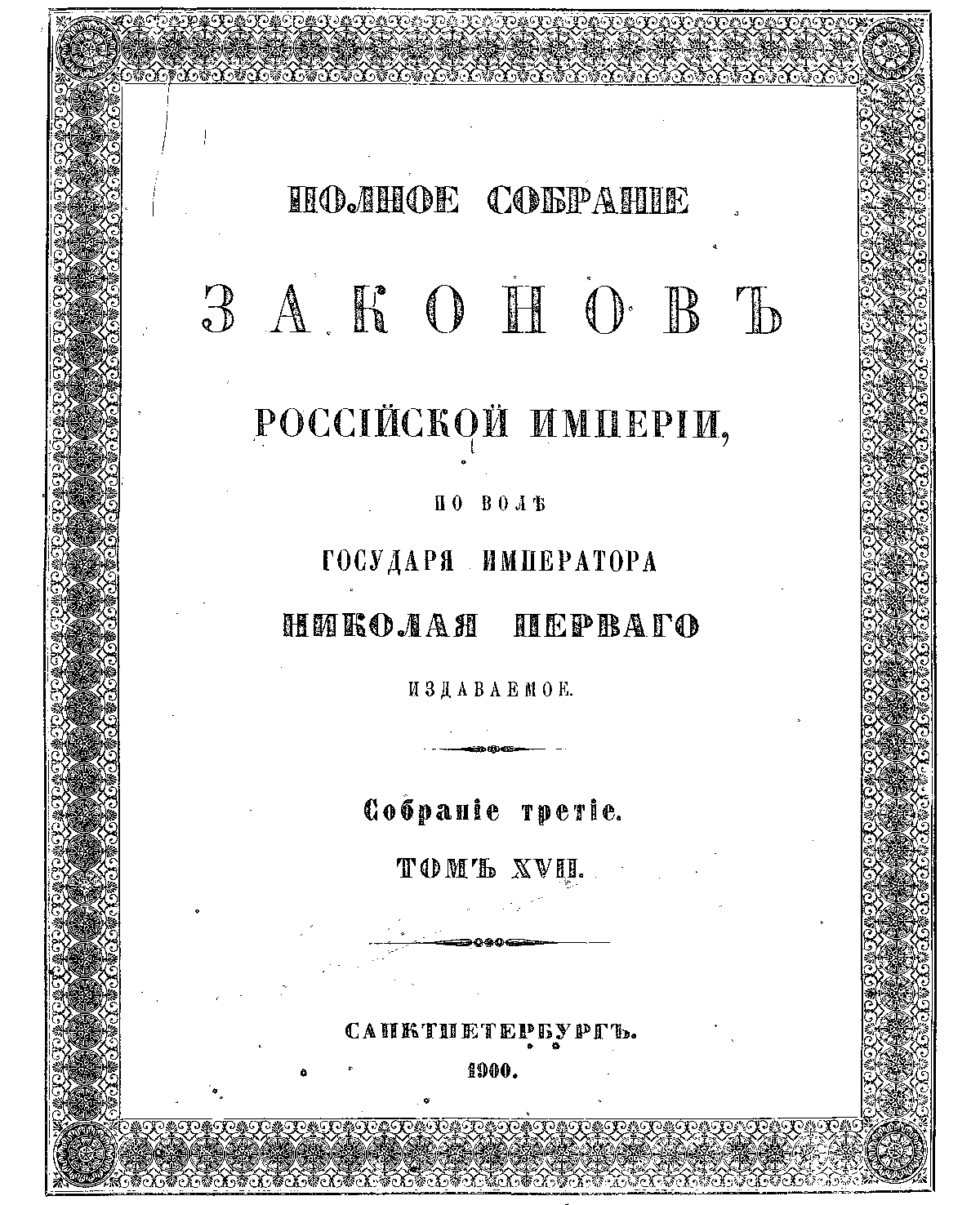 Полное собрание законов Российской Империи. Собрание Третье. Том XVII