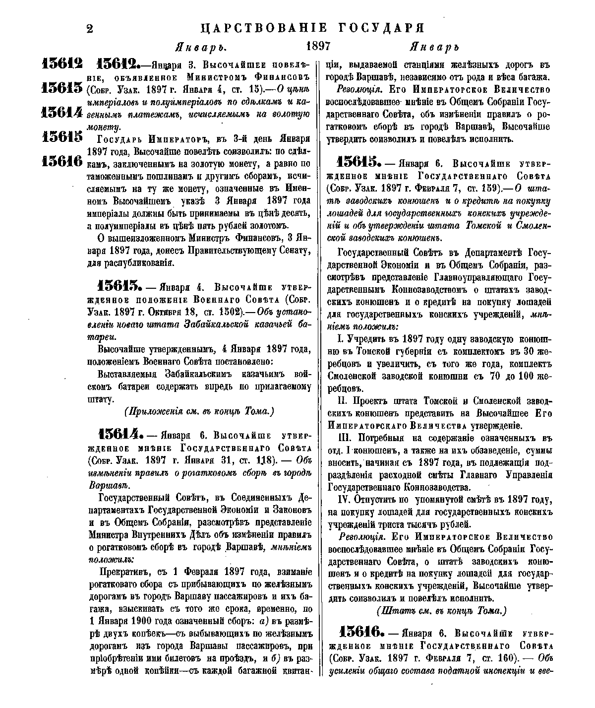 Третье издание выходило ежегодно до 1916 г., включает более 40 тысяч законодательных актов с 1 марта 1881 г. до конца 1913 г. — время правления Александра III — Николая II (33 тома).