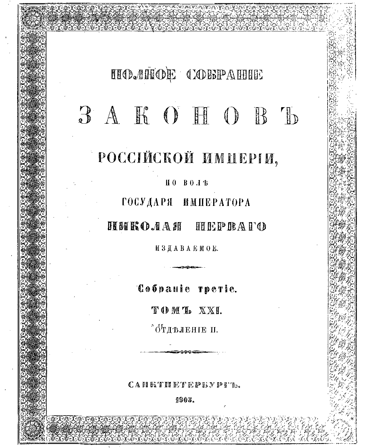 Полное собрание законов Российской Империи. Собрание Третье. Том XXI. Отделение 2