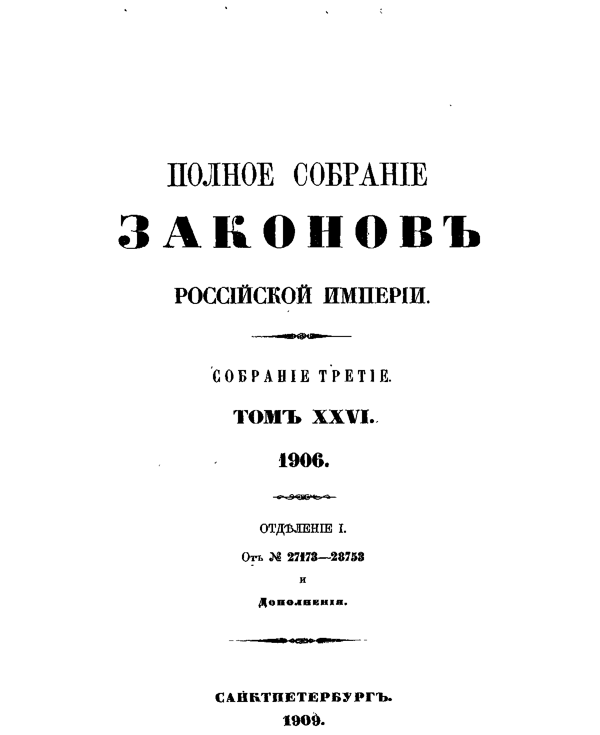 Полное собрание законов Российской Империи. Собрание Третье. Том XXVI. Отделение 1