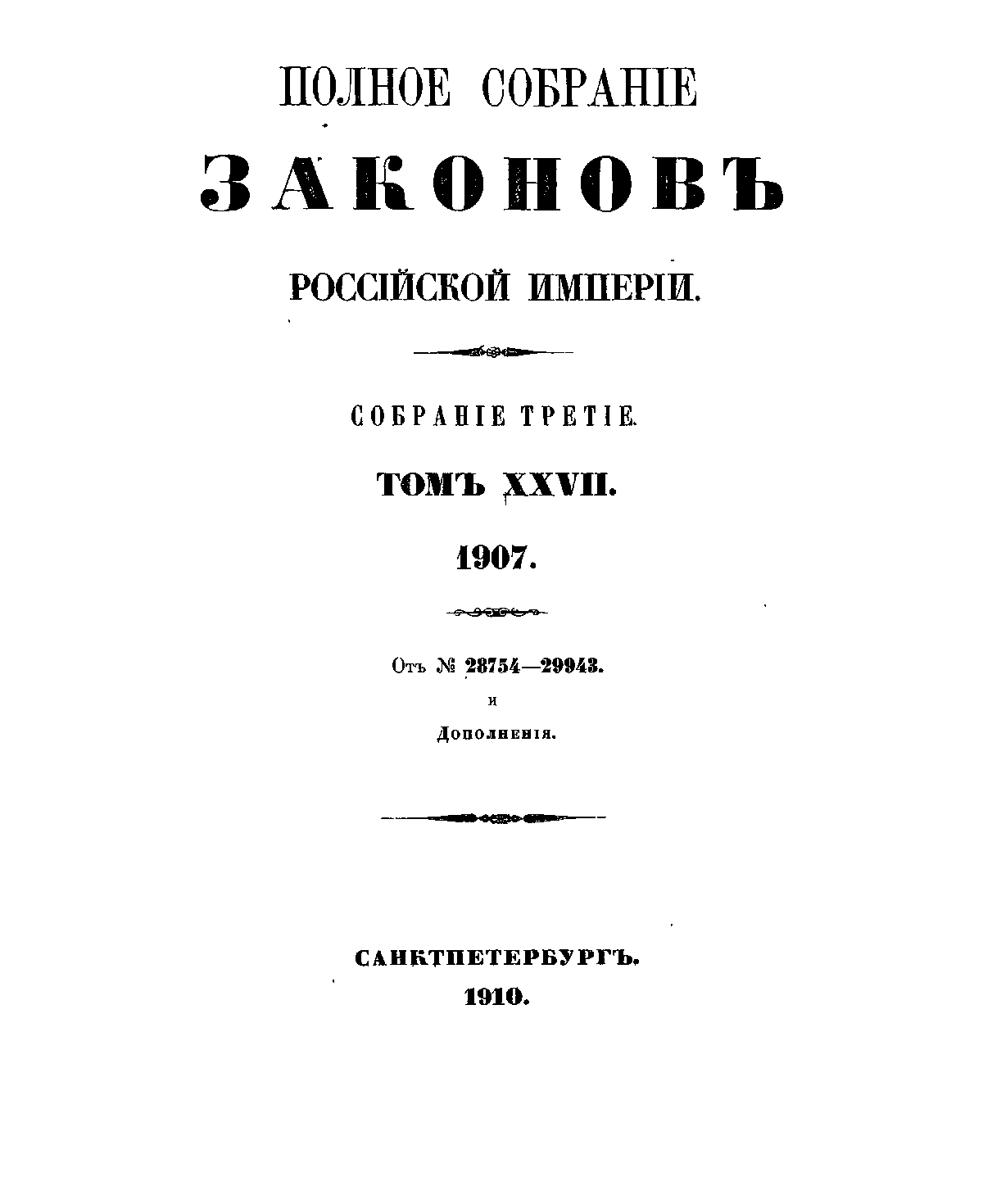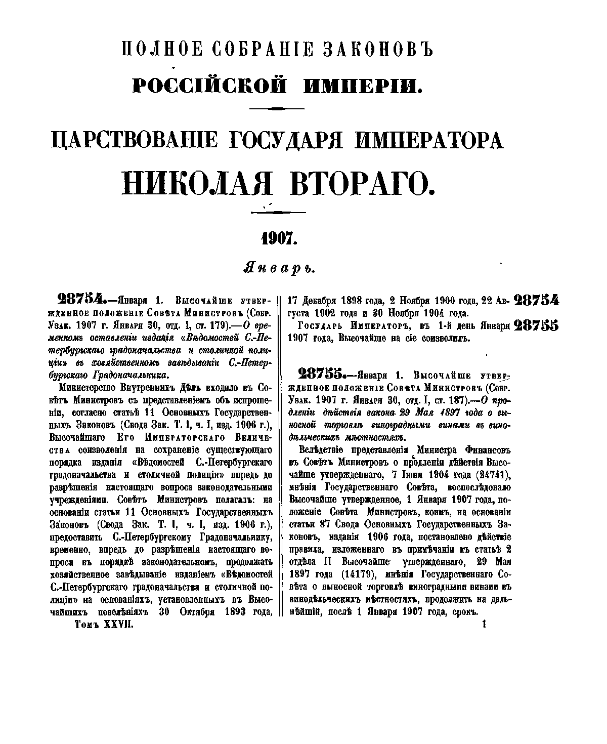 Полное собрание законов Российской Империи. Собрание Третье. Том XXVII