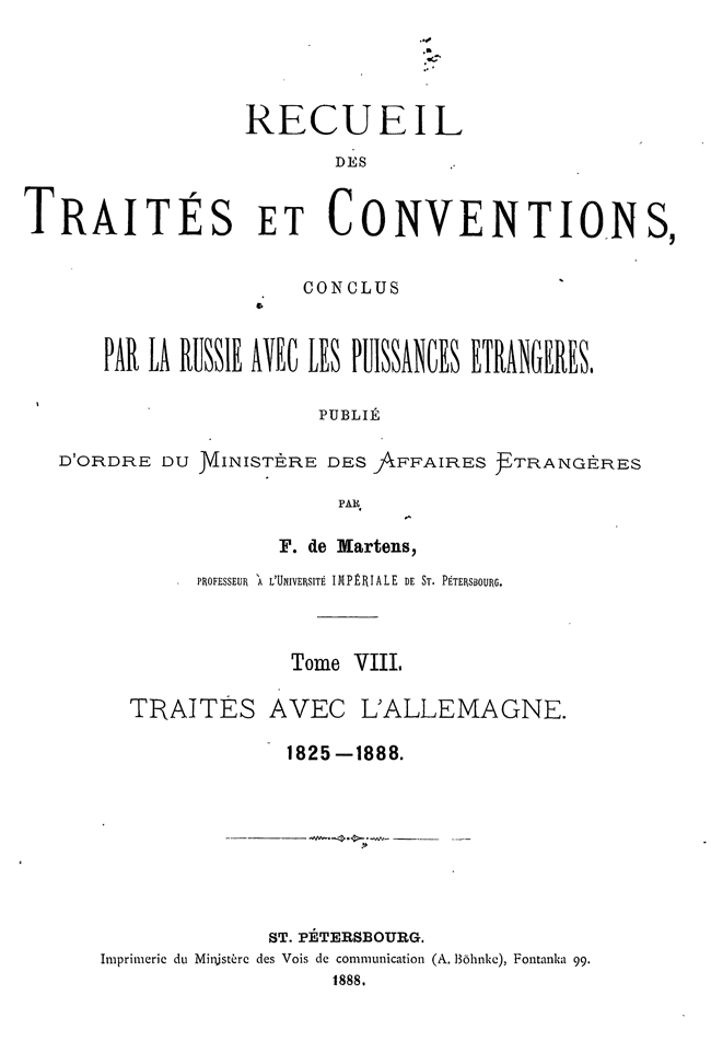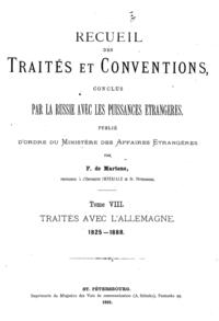 Собрание Трактатов и Конвенций, заключенных Россией с иностранными державами. Том VIII. Трактаты с Германией.