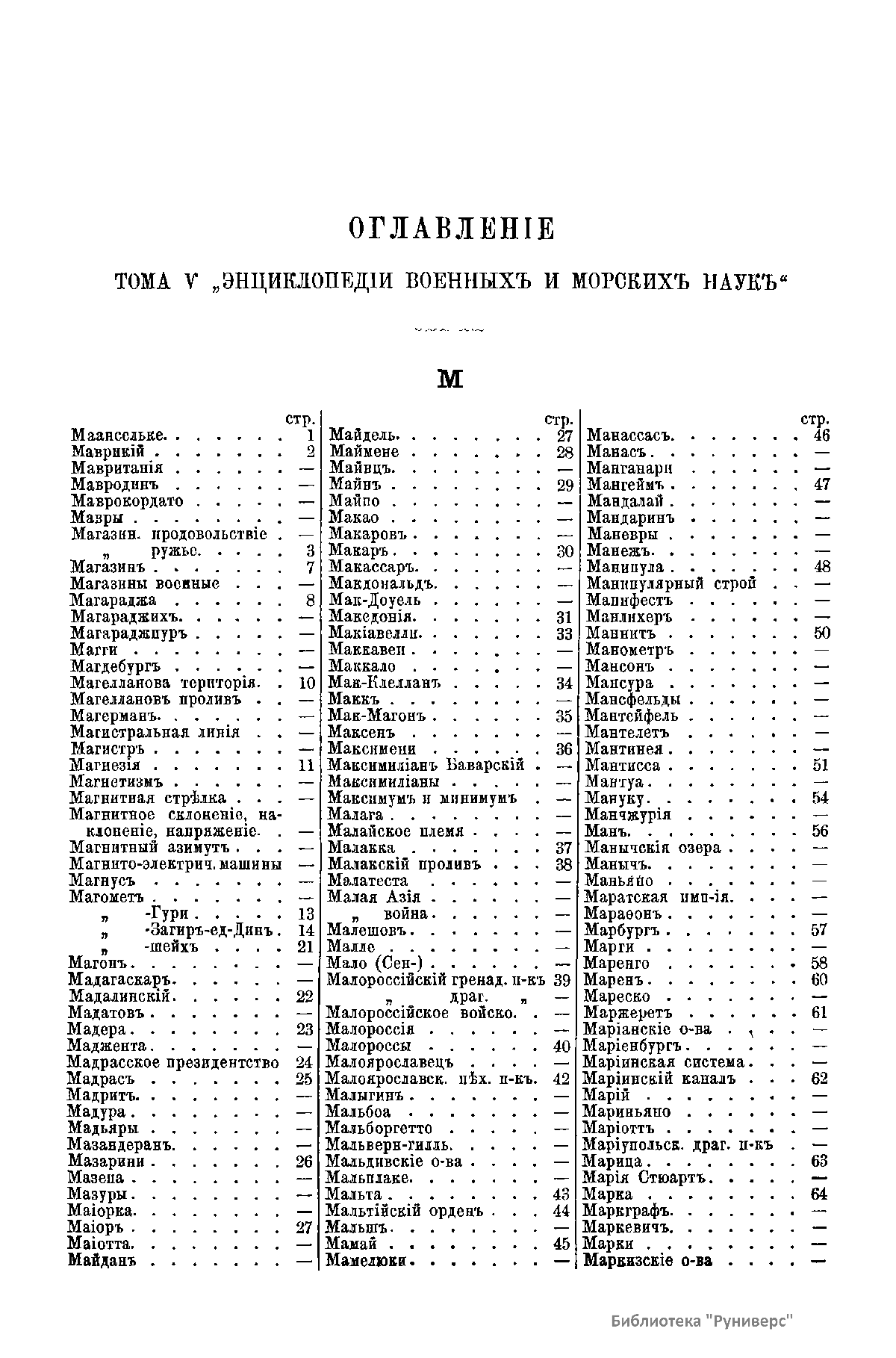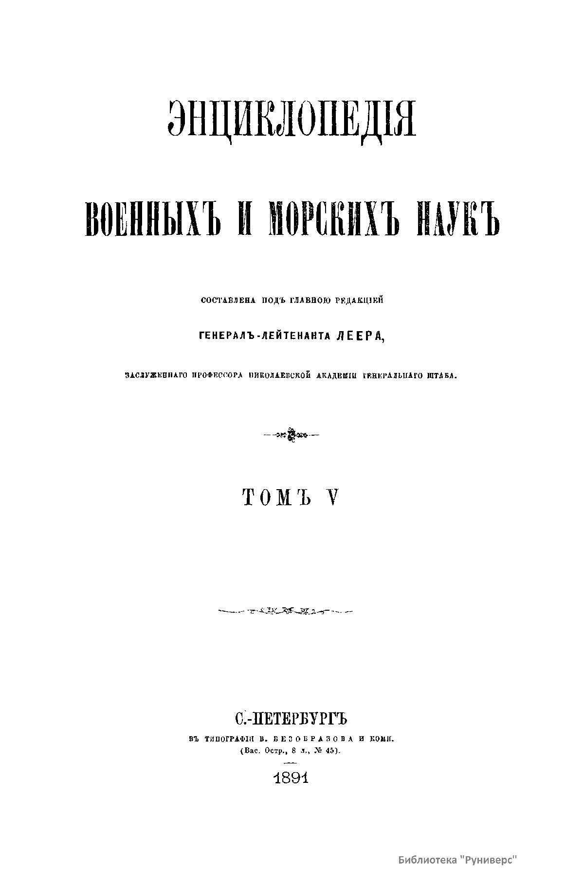 «Энциклопедия военных и морских наук» представляет новое существенно переработанное издание «Военного Энциклопедического Лексикона», генерал-лейтенанта барона Зедделера (1852-1858 г.). Настоящее издание значительно дополнено описанием всех военных явлений в области науки, техники и боевой практики.