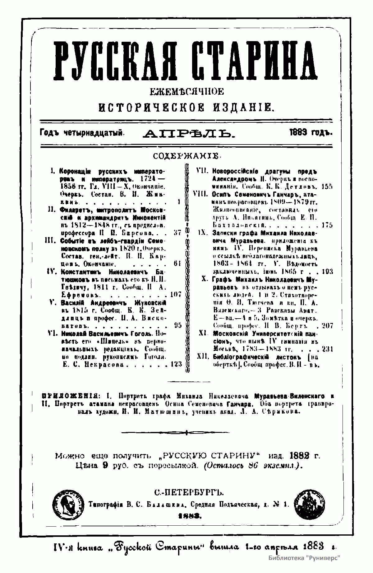 Русская старина. Том XXXVIII. 1883. Выпуски 4-6