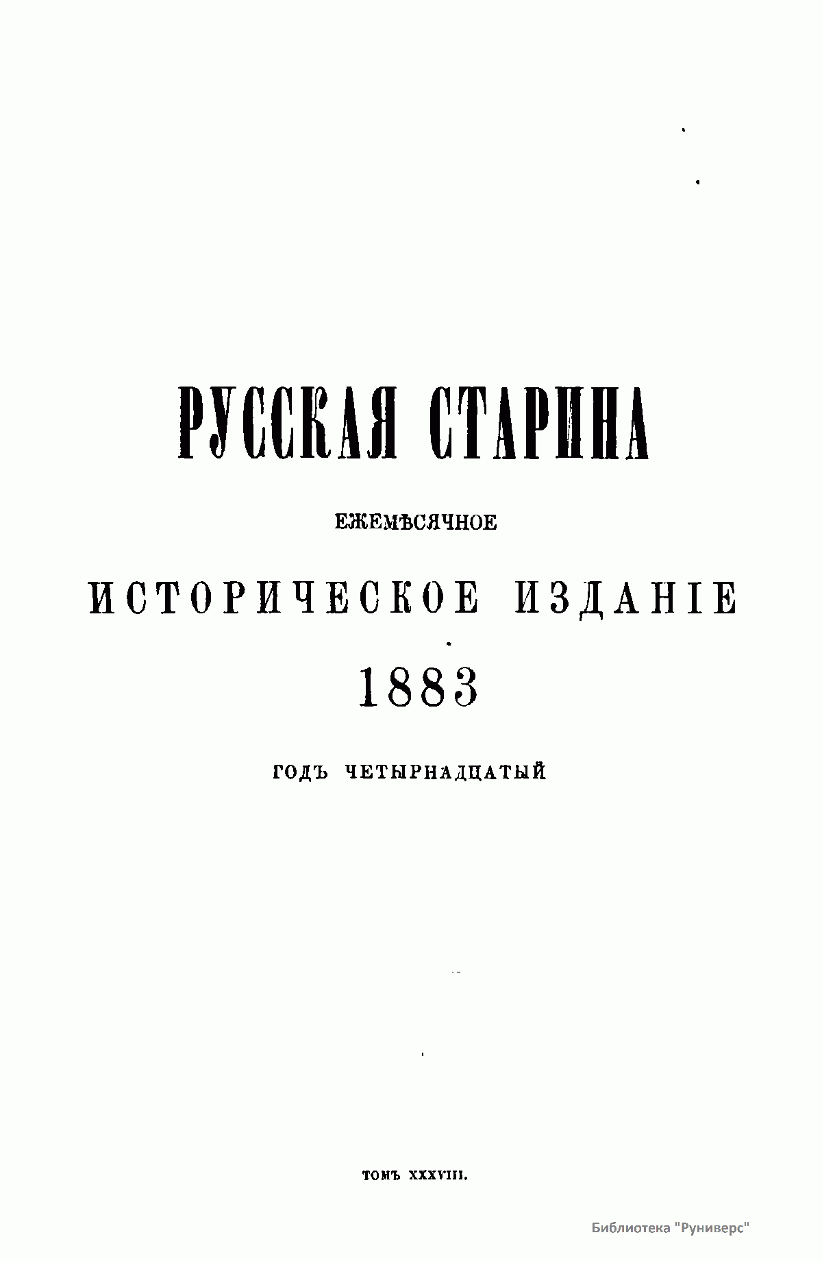 Русская старина. Томъ XXXVIII. 1883. Выпуски 4-6