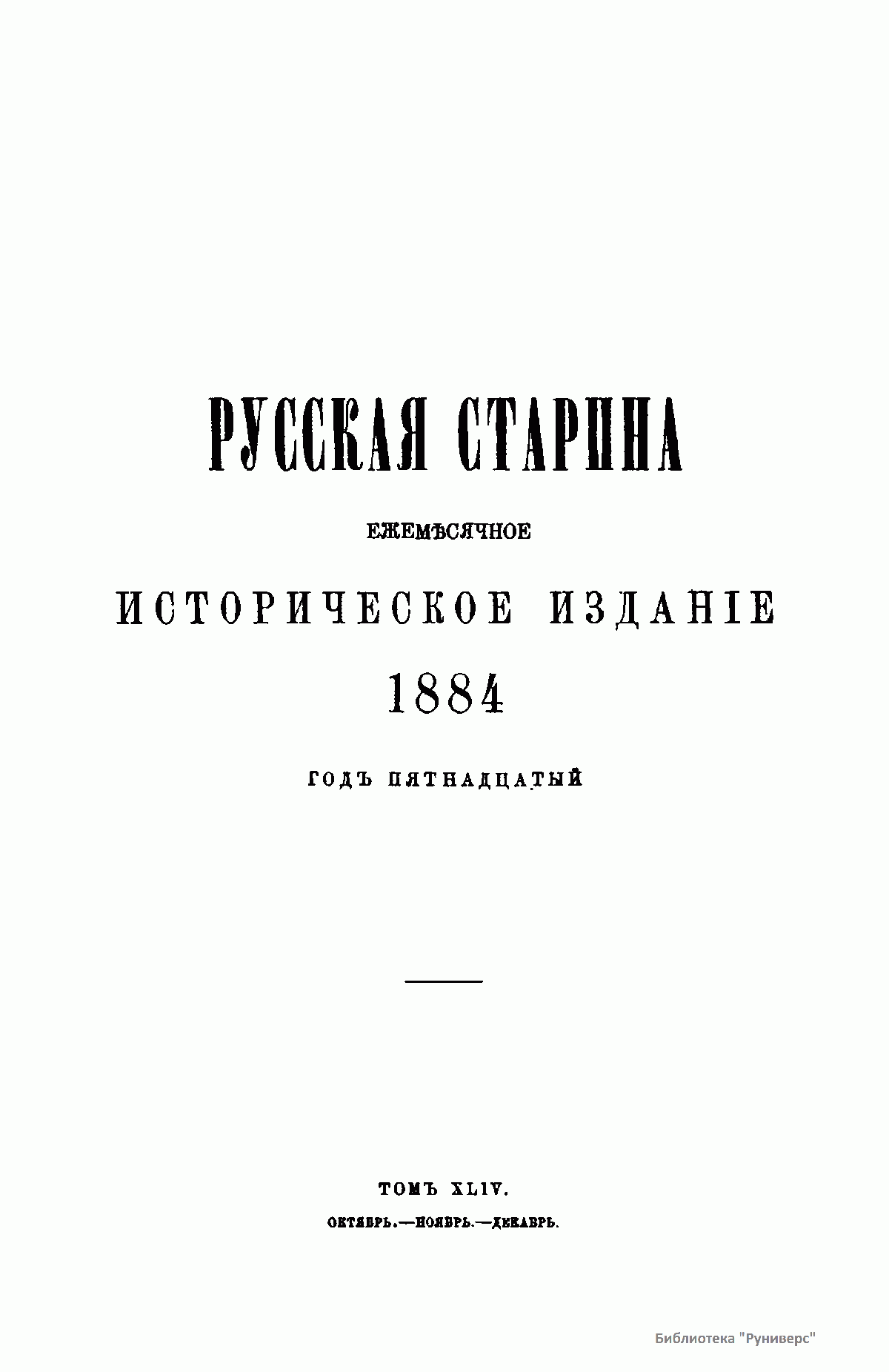 Русская старина. Том XLIV. 1884. Выпуски 10-12