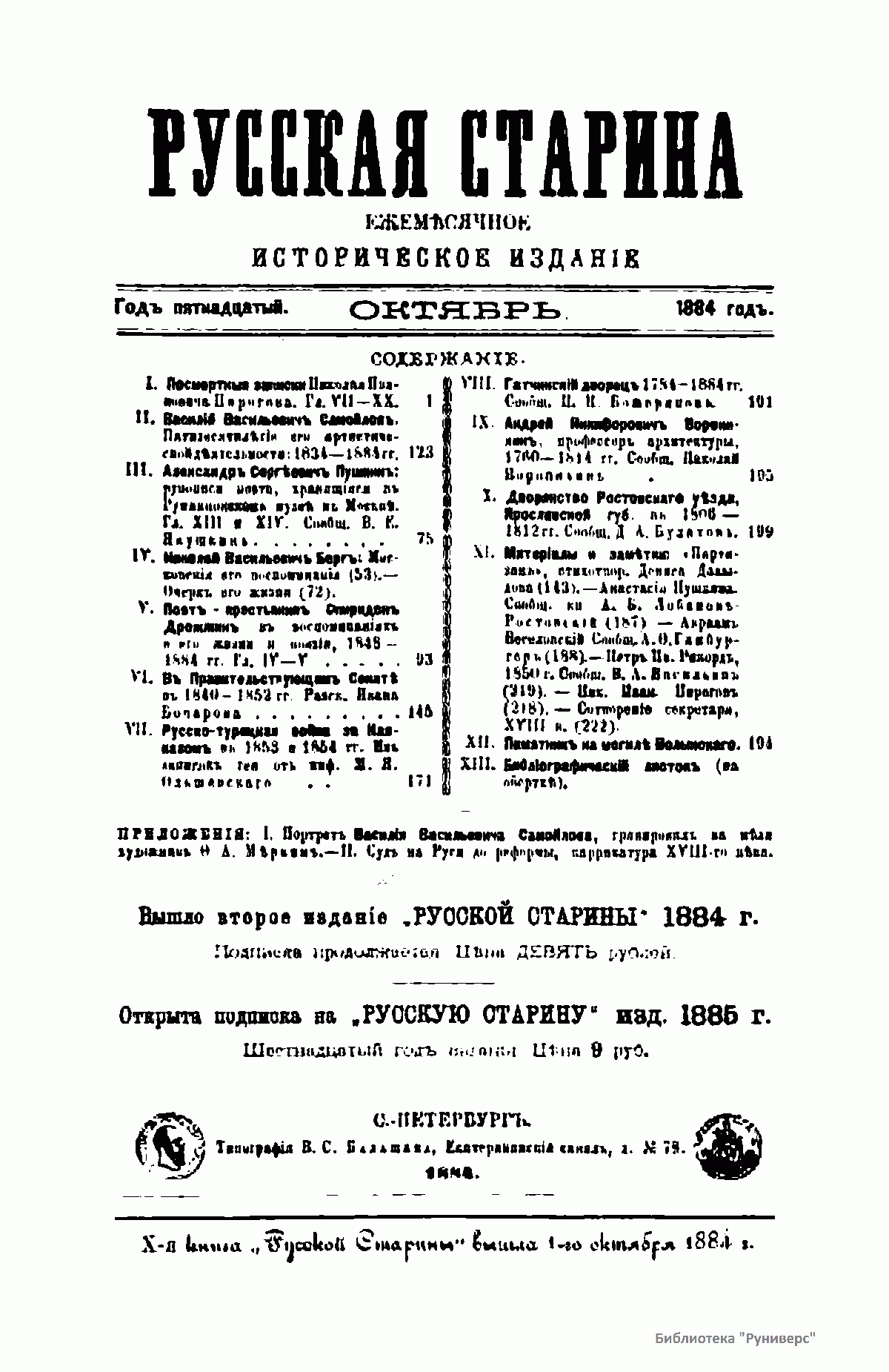 Русская старина. Томъ XLIV. 1884. Выпуски 10-12
