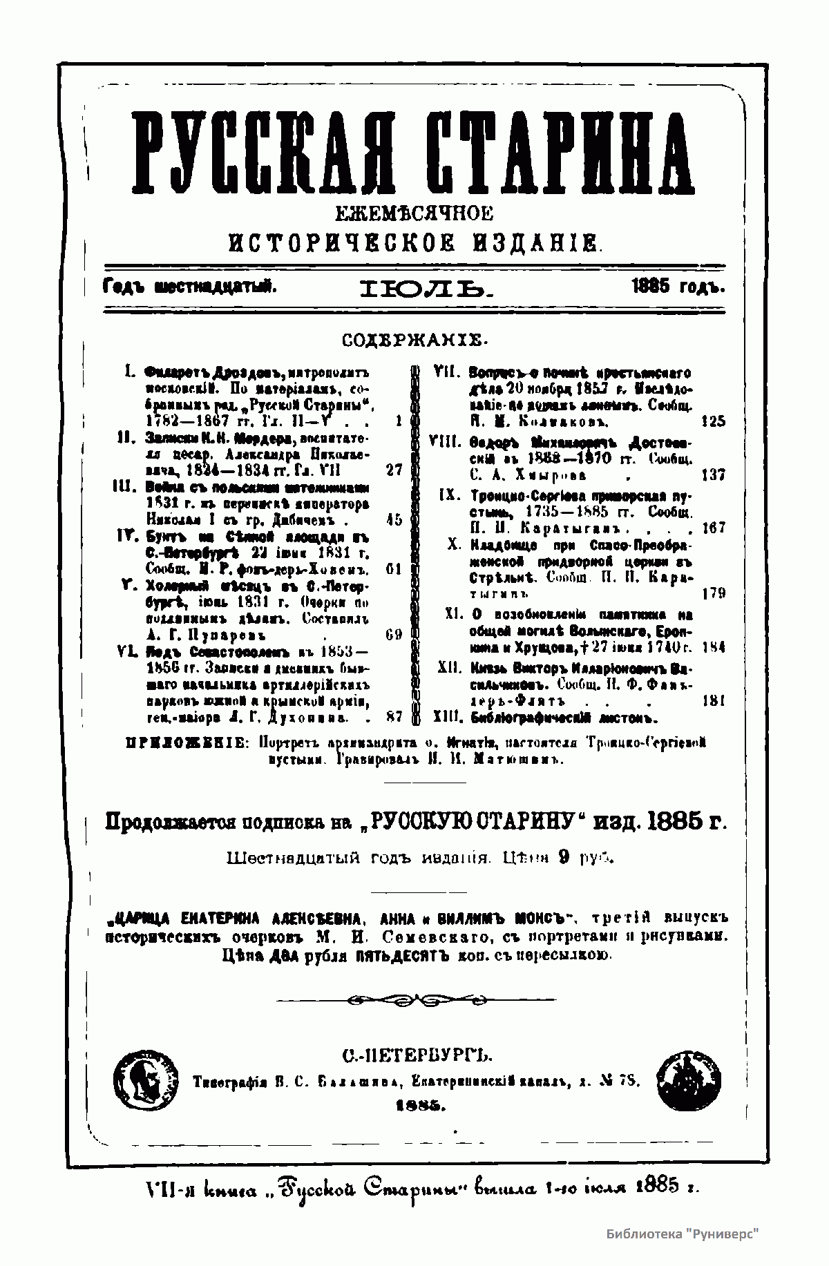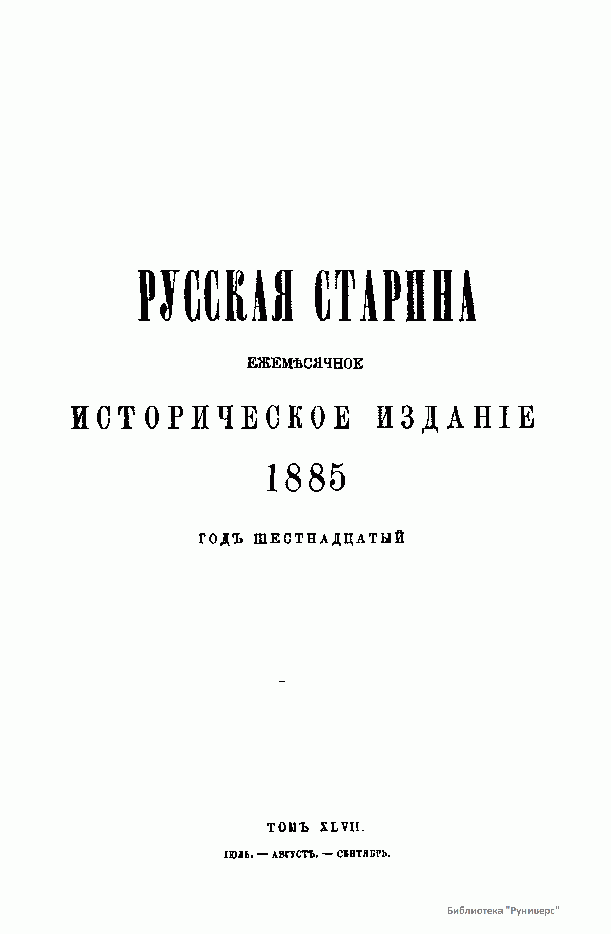 Русская cтарина. Том XLVII. 1885. Выпуски 7-9