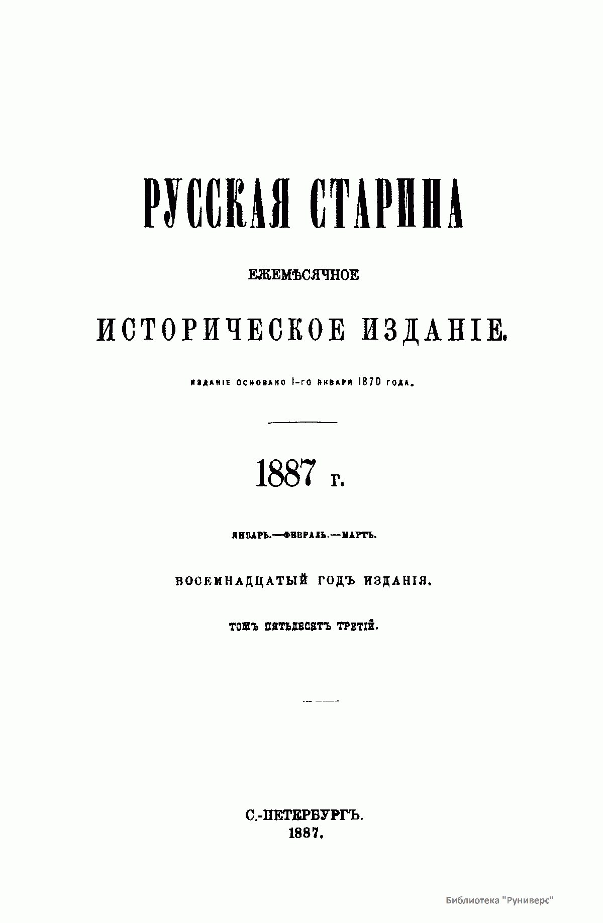 Русская cтарина. Том LIII. 1887. Выпуски 1-3
