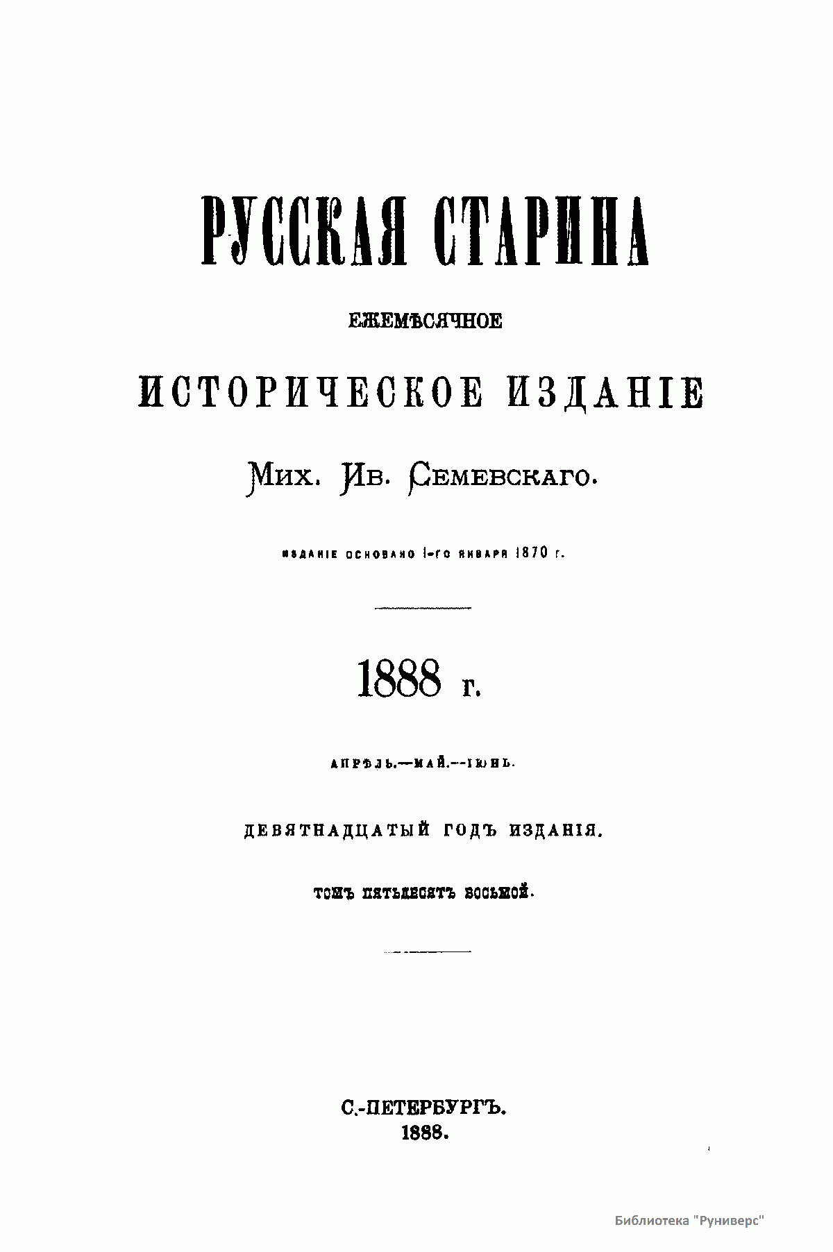 Русская cтарина. Том LVIII. 1888. Выпуски 4-6