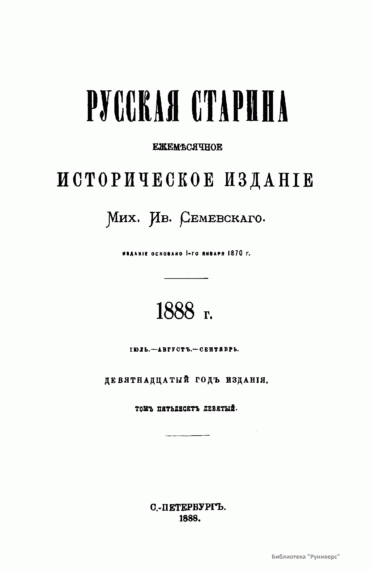 Русская cтарина. Том LIX. 1888. Выпуски 7-9