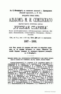 «Русская старина», ежемесячный исторический журнал, выходил в Петербурге в 1870-1918. Основан, издавался и редактировался (1870-1892) М. И. Семевским при участии В. И. Семевского. Последующими редакторами были Н. К. Шильдер (1892-1896), Н. Ф. Дубровин (1896-1904), военные историки С. П. Зыков, П. Н. Воронов.