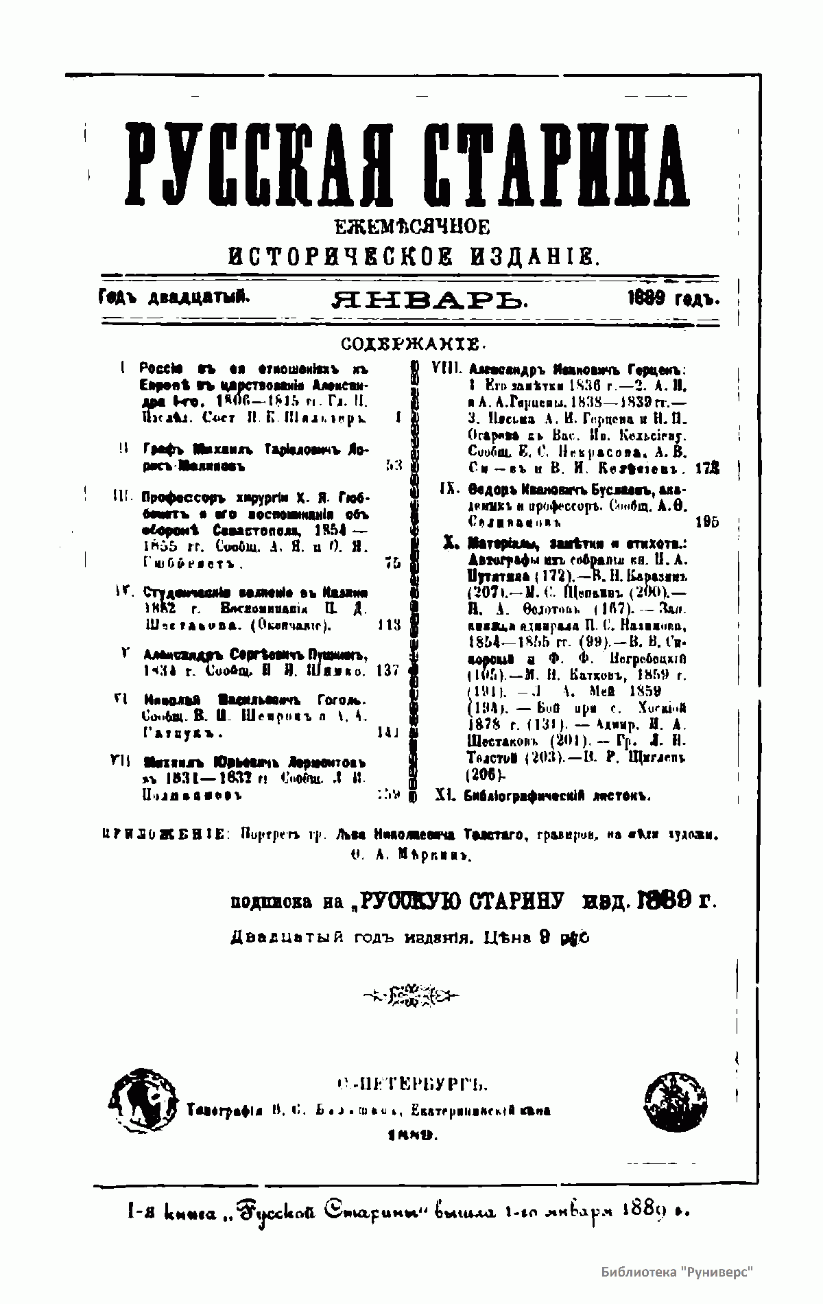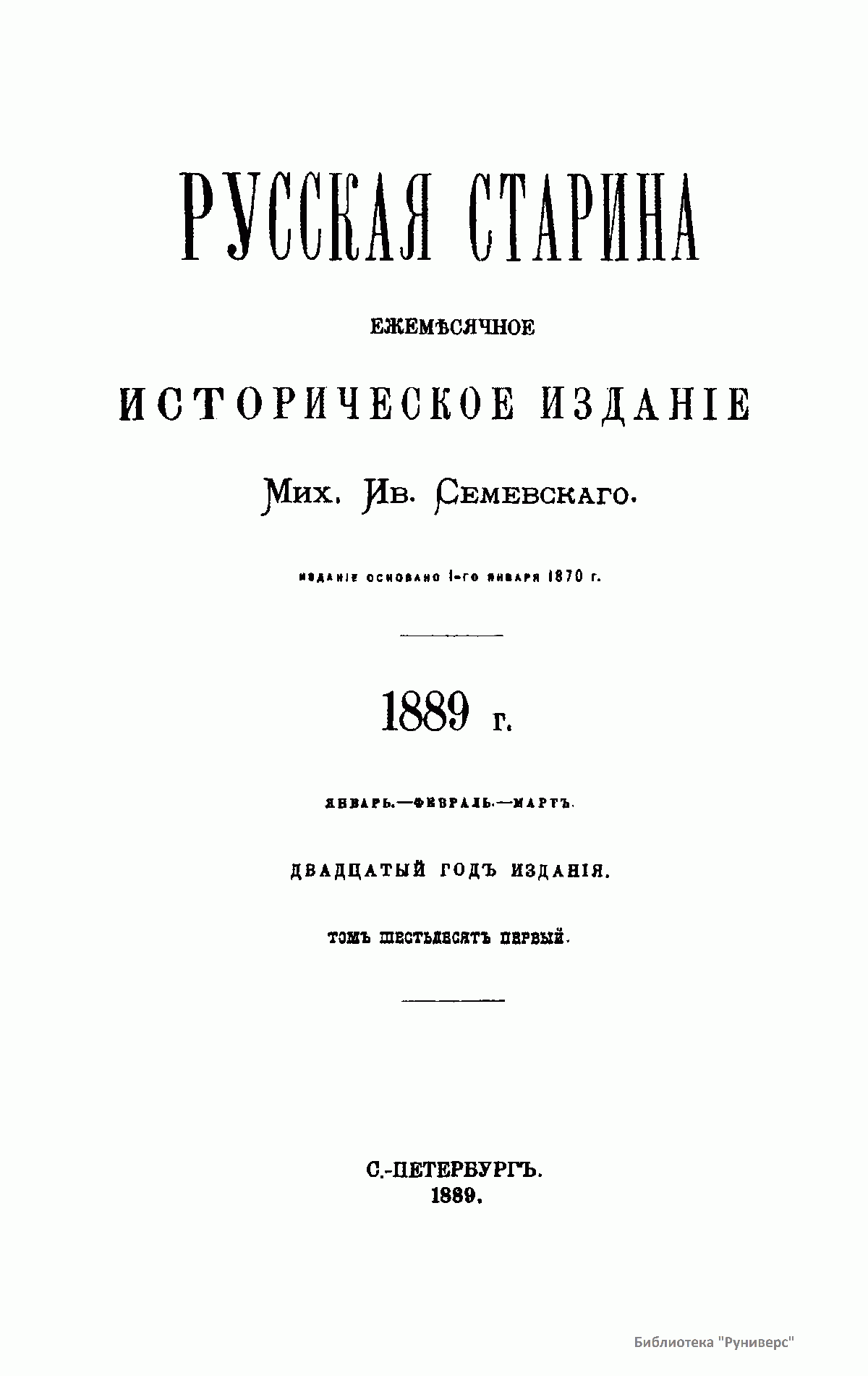 Русская cтарина. Томъ LXI-LXII. 1889. Выпуски 1-4
