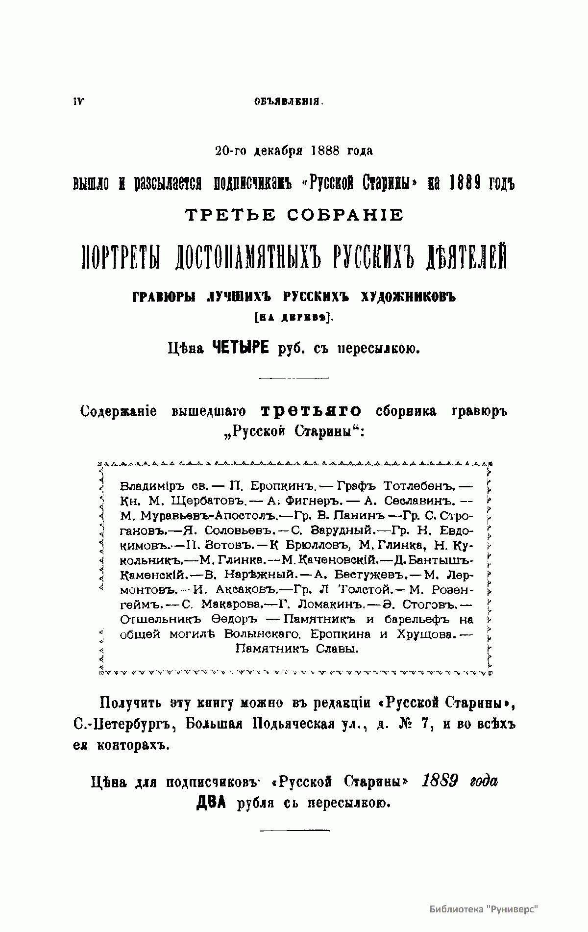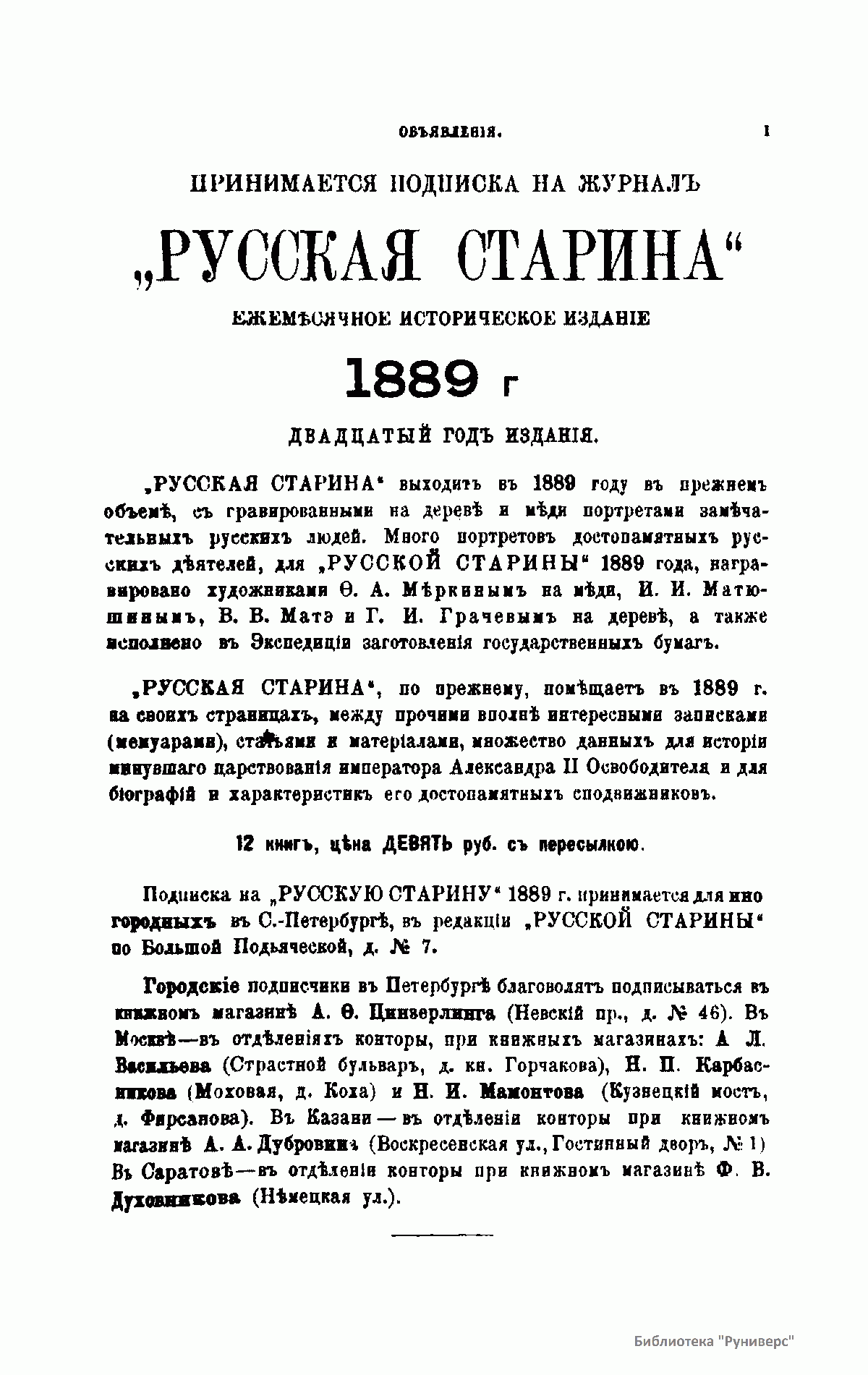 Русская cтарина. Том LXI-LXII. 1889. Выпуски 1-4