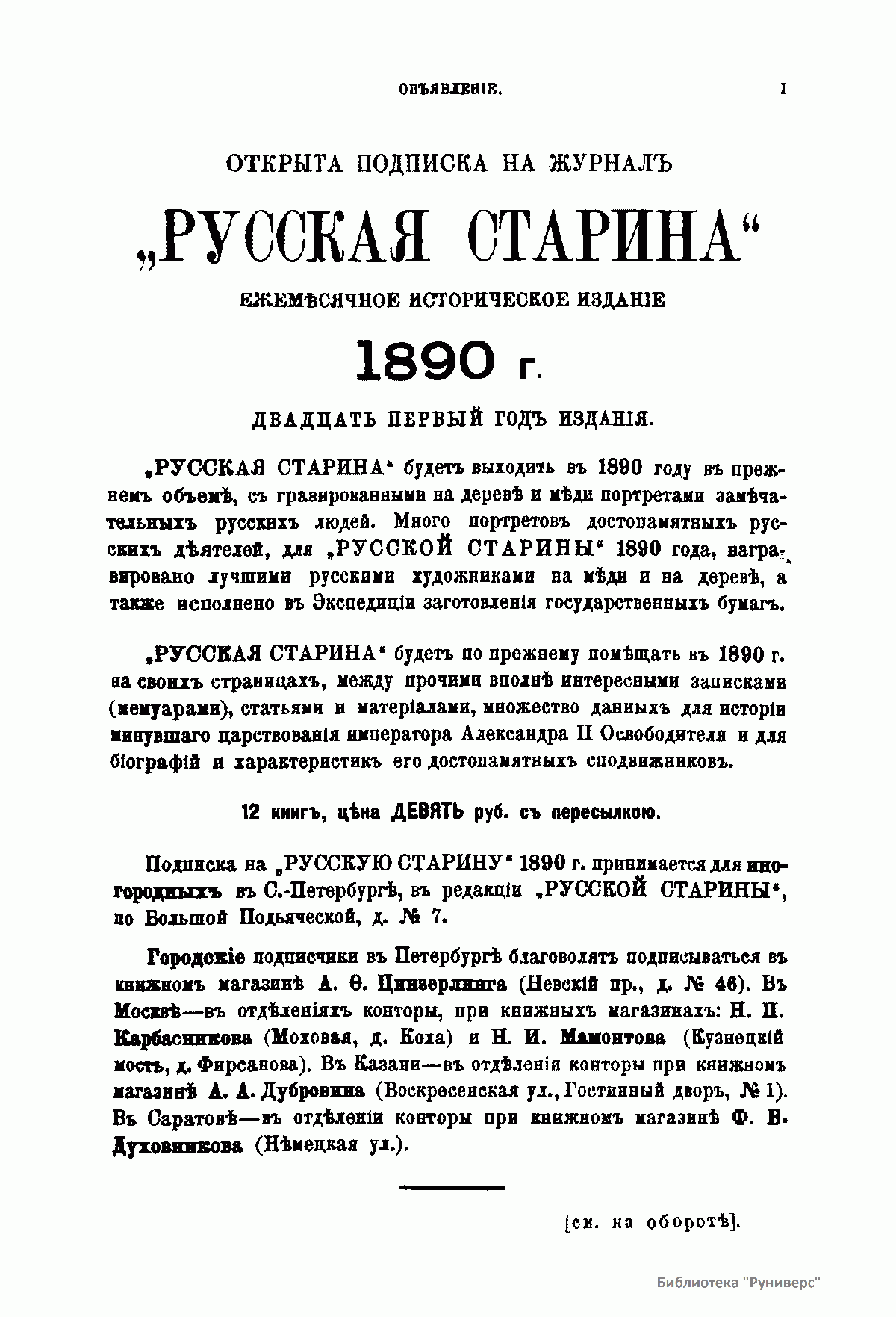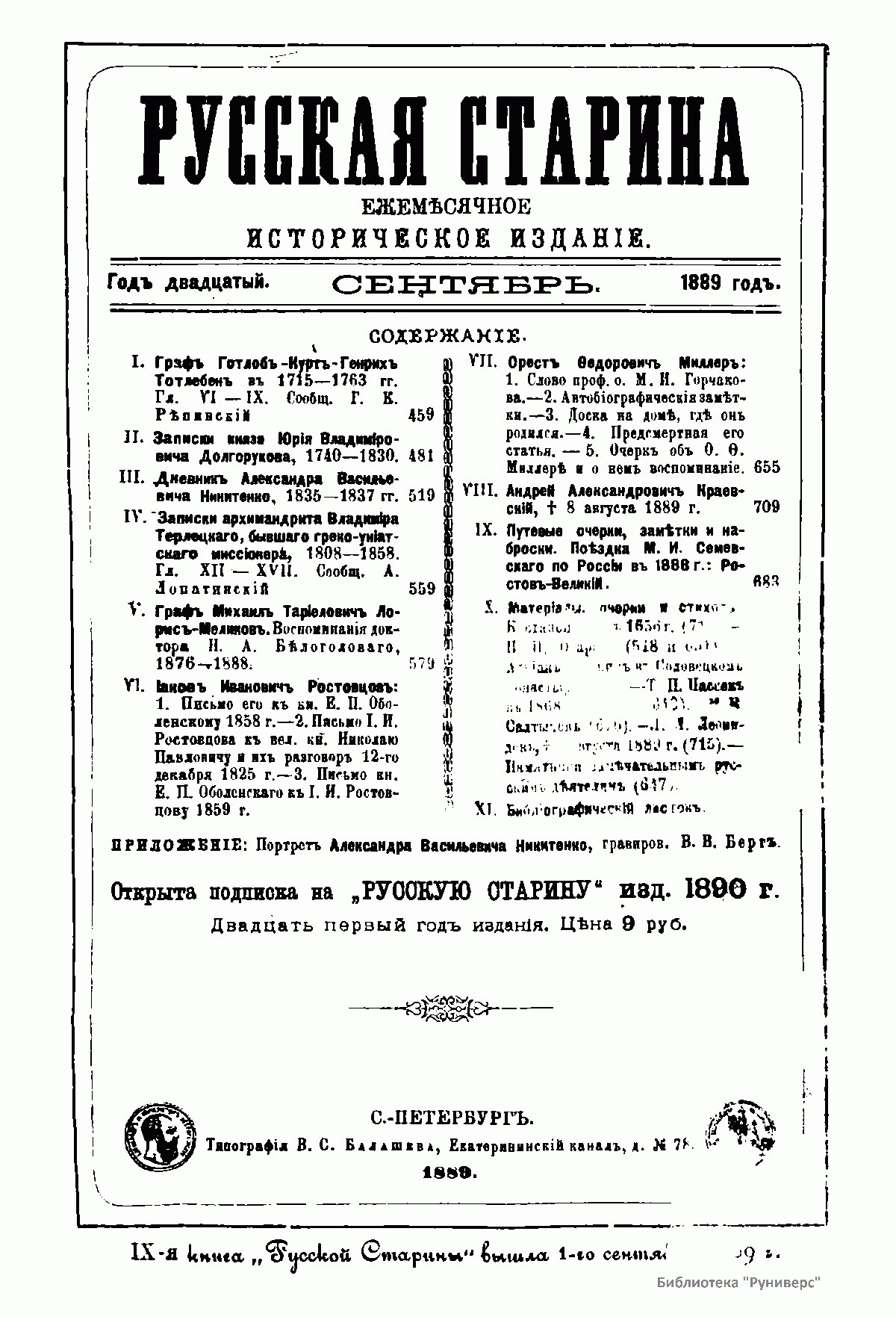 Русская cтарина. Том LXIII-LXIV. 1889. Выпуски 9-12