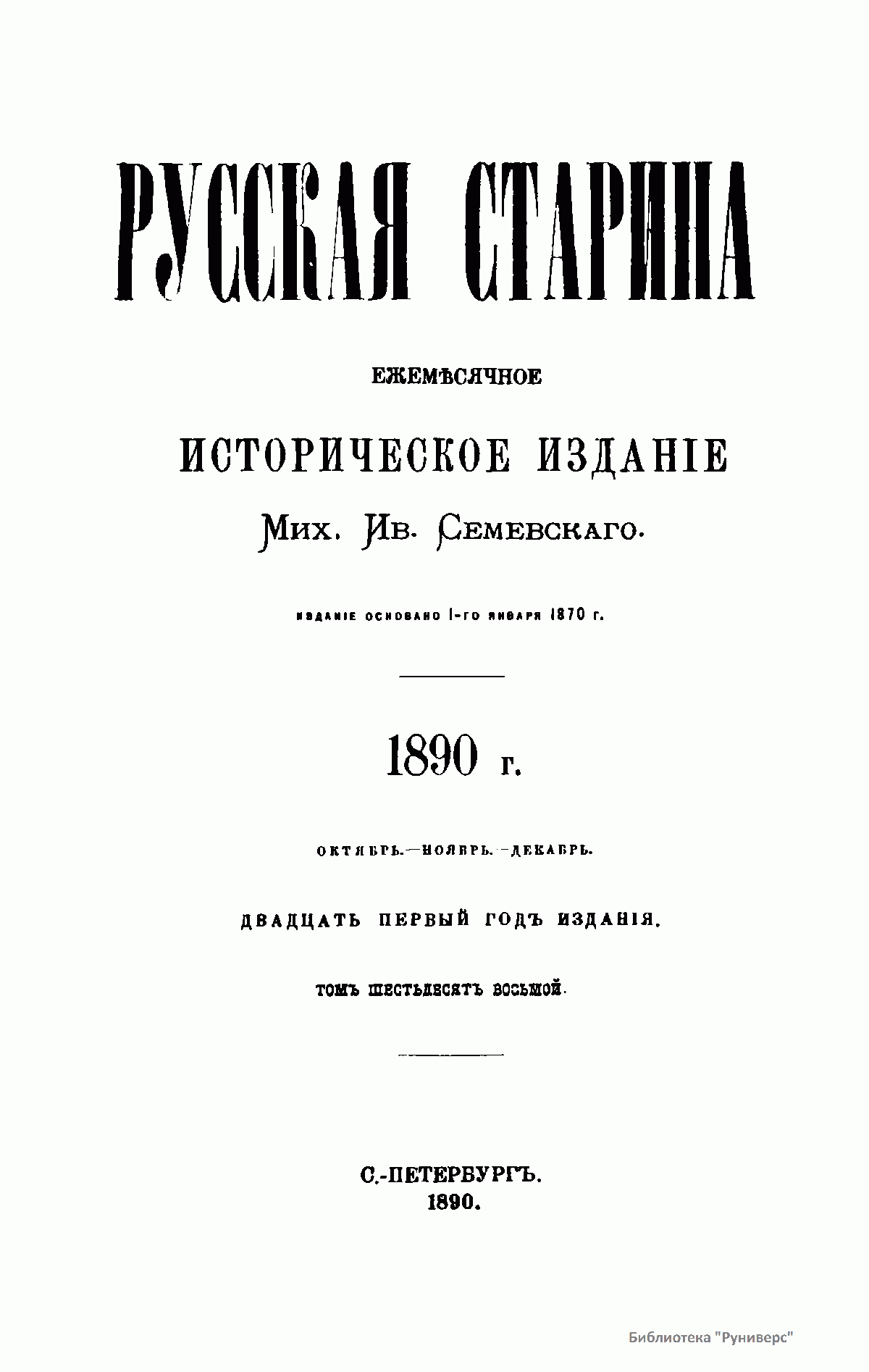 Русская cтарина. Том LXVIII. 1890. Выпуски 10-12