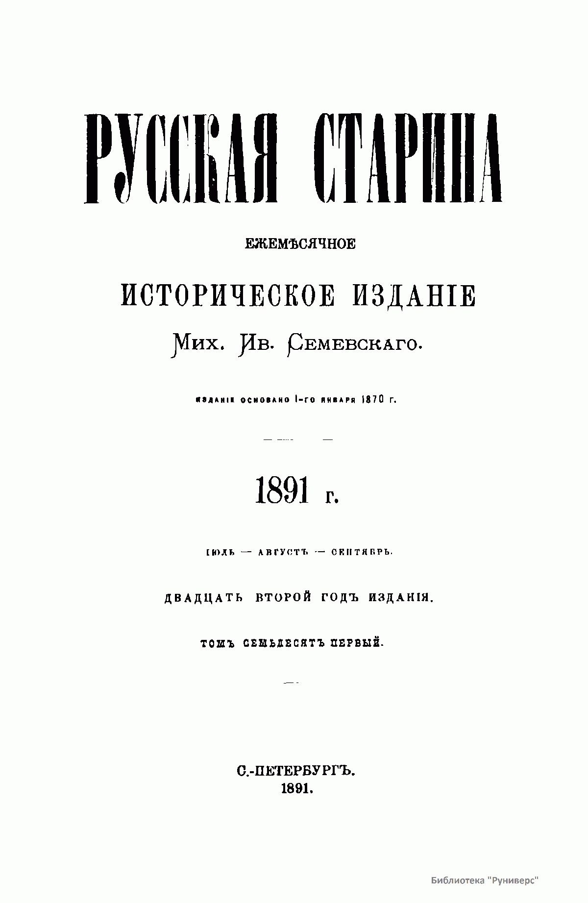 Русская cтарина. Том LXXI. 1891. Выпуски 7-9