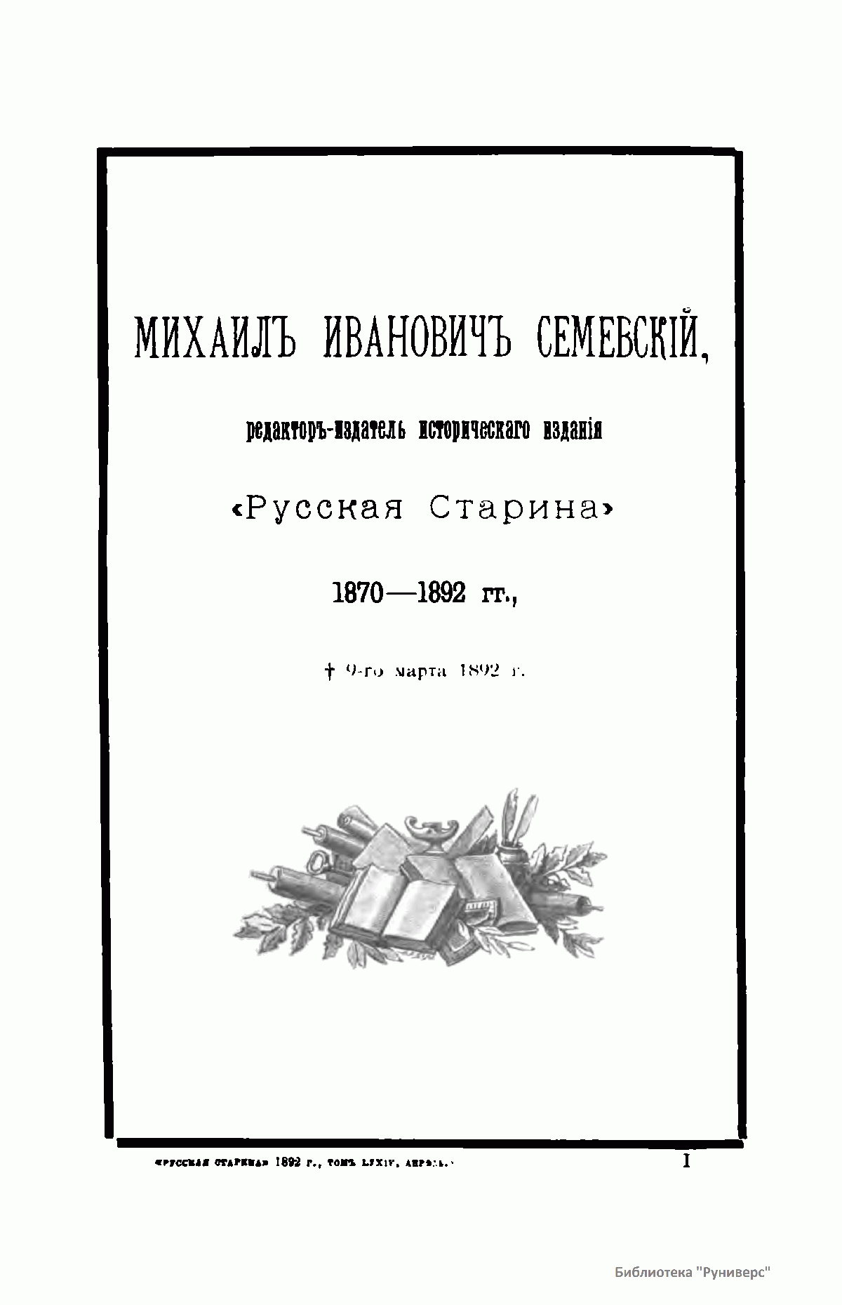Русская cтарина. Томъ LXXIV. 1892. Выпуски 4-6