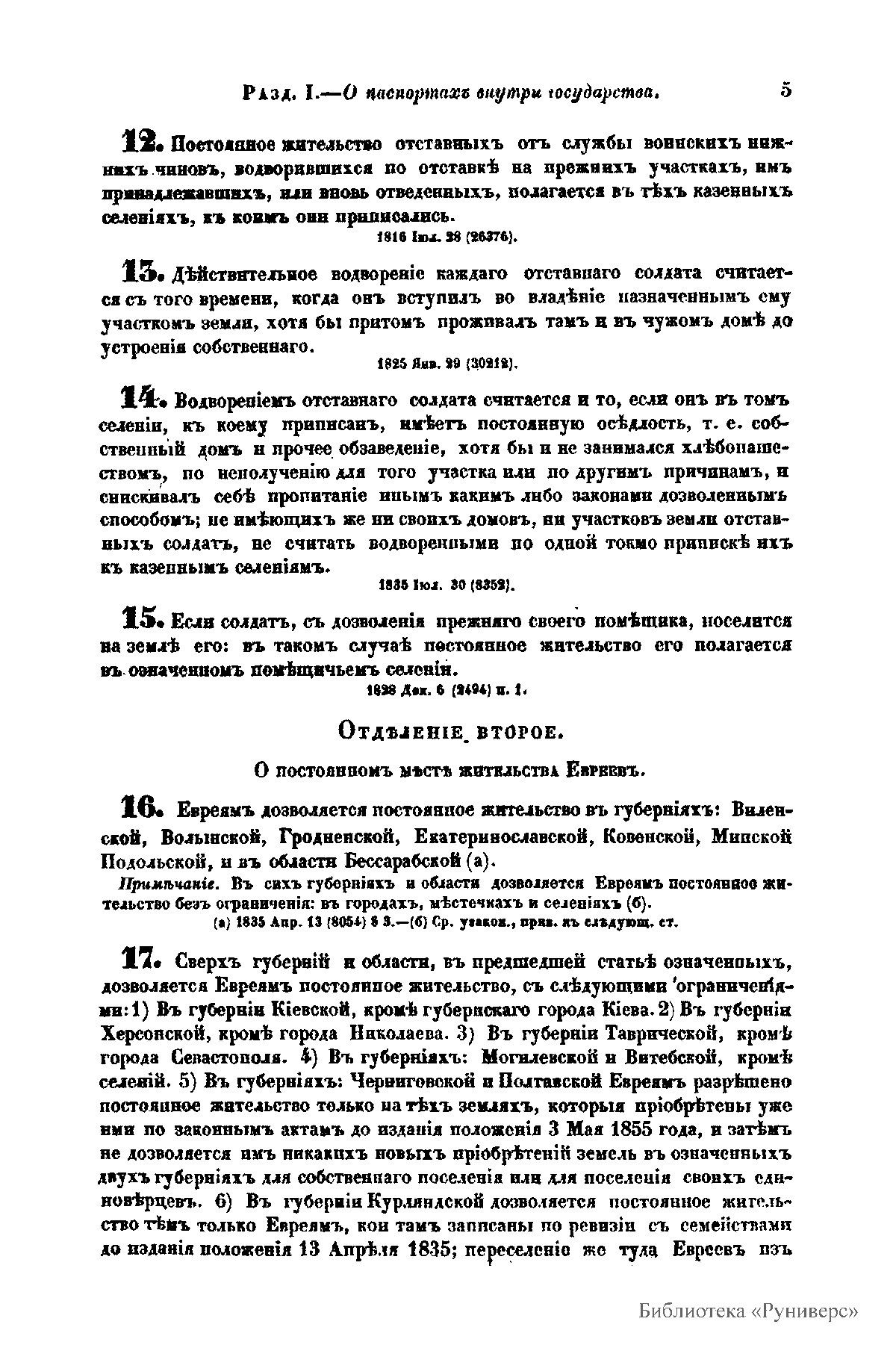 Сводъ законовъ Россiйской имперiи. Томъ четырнадцатый. Уставы о паспортахъ, о предупрежденiи преступленiй, о цензурѣ, о содержащихся подъ стражею, и о ссыльныхъ