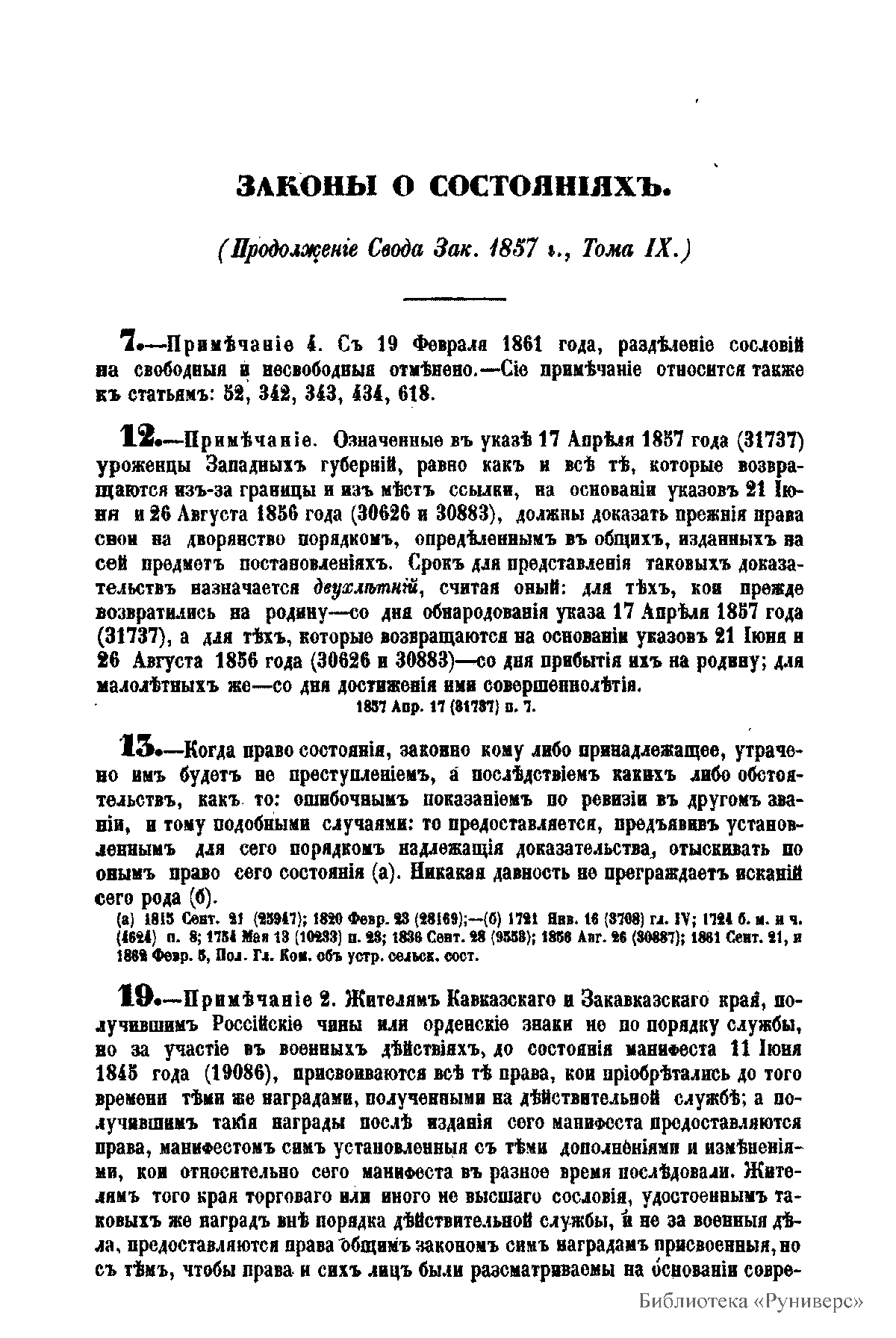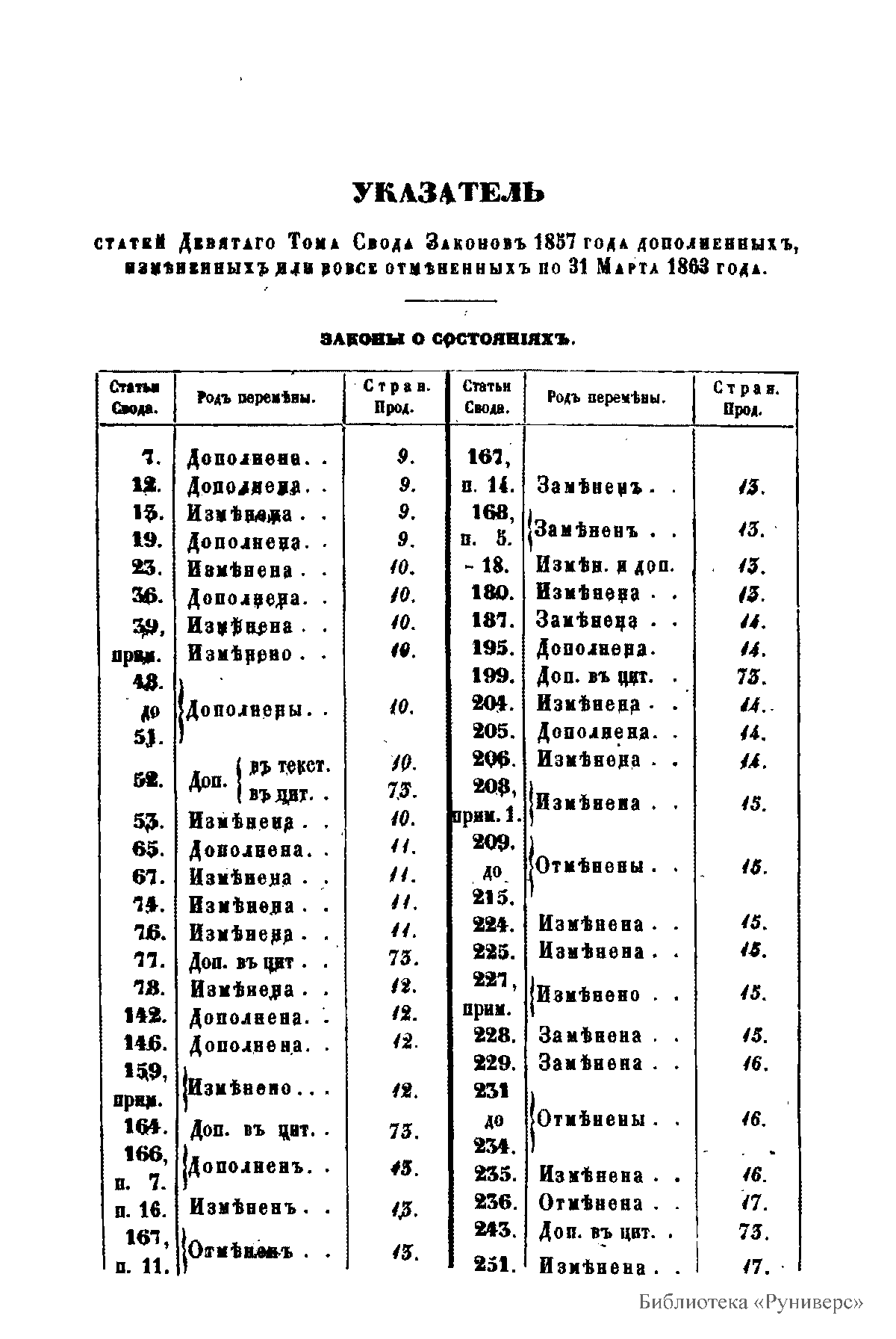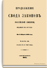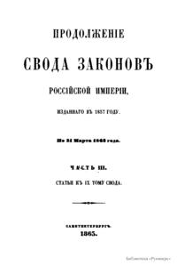 Продолжение свода законов Российской империи, изданного в 1857 году. По 31 мая 1863 года. Часть III. Статьи к IX томам свода