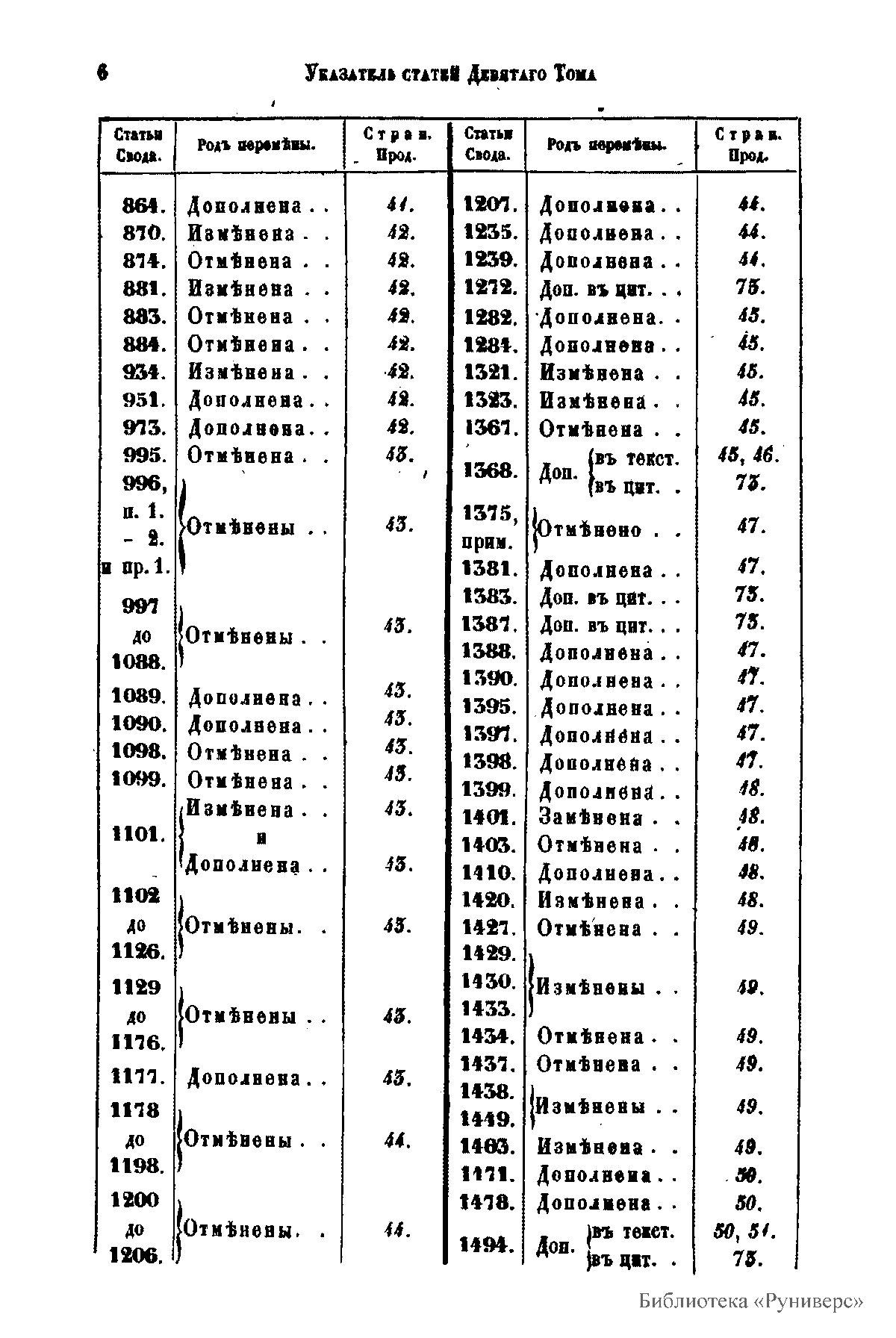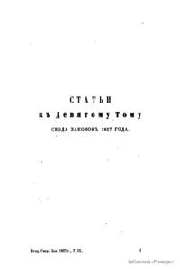 Продолженiе свода законовъ Россiйской имперiи, изданнаго въ 1857 году. По 31 мая 1863 года. Часть III. Статьи къ IX томам свода