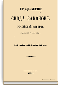 Продолжение свода законов Российской империи, изданного в 1857 году. С 1 апреля по 31 декабря 1863 года