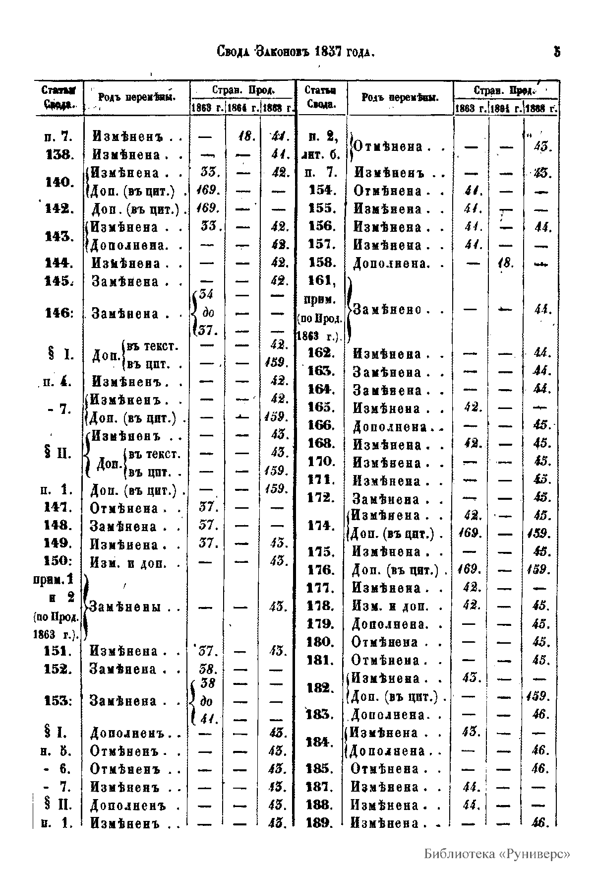 Свод законов Российской империи— официальное собрание расположенных в тематическом порядке действующих законодательных актов Российской империи, созданное при Николае I. Впервые он был напечатан в 1832 году. Манифестом 31 января 1833 года Свод законов был объявлен действующим источником права с 1 января 1835 года. Первое издание 1832 года и последующие 1842-го и 1857 года состояли из пятнадцати томов. После 1857 года Свод законов полностью не переиздавался, а выходили лишь отдельные тома. В качестве отдельного – 16-го тома в 1885 году вышли Судебные уставы. Между изданиями Свода законов выходили ежегодные и сводные (за несколько лет) «Продолжения» Свода законов с указанием на упраздненные и измененные статьи. В своде законов собраны все реально действовавшие в определенный момент времени законы по тем или иным проблемам права, это справочник для юристов. Отбор законодательного материала для включения в Свод производился на основе Полного собрания законов (первое Полное собрание законов, появившееся в 1830 году, состояло из 45 томов, содержащих 30 920 актов и 6 томов приложений). Собрание законов – это в большой степени историческое издание. По нему можно изучать развитие, направление правительственной мысли в стране. Это летопись отечественного законотворчества. Изучая страницу за страницей эту летопись, мы можем узнать, что в тот или иной момент истории являлось злобой дня.