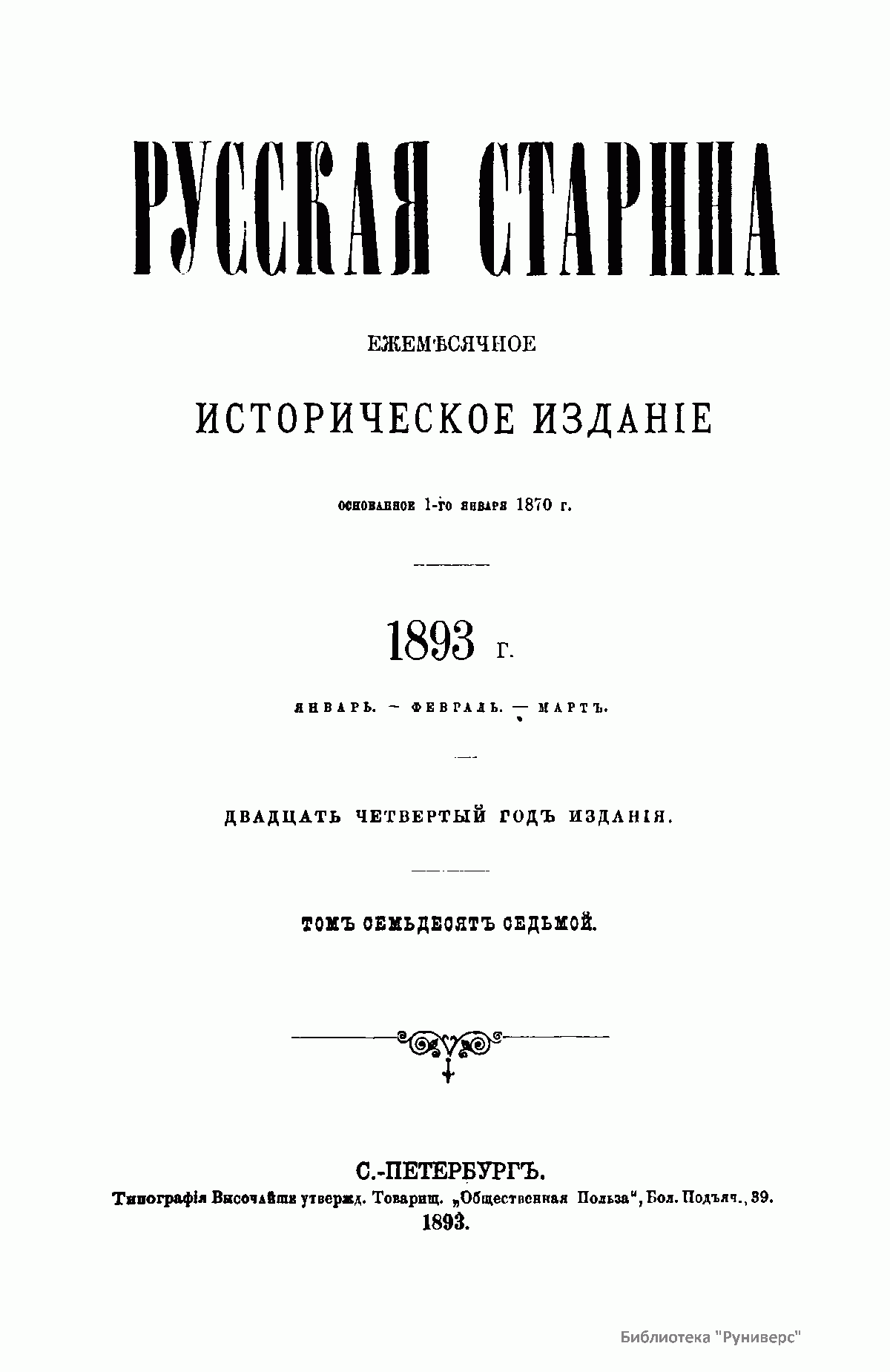 Русская старина. Том LXXVII. 1893. Выпуски 1-3
