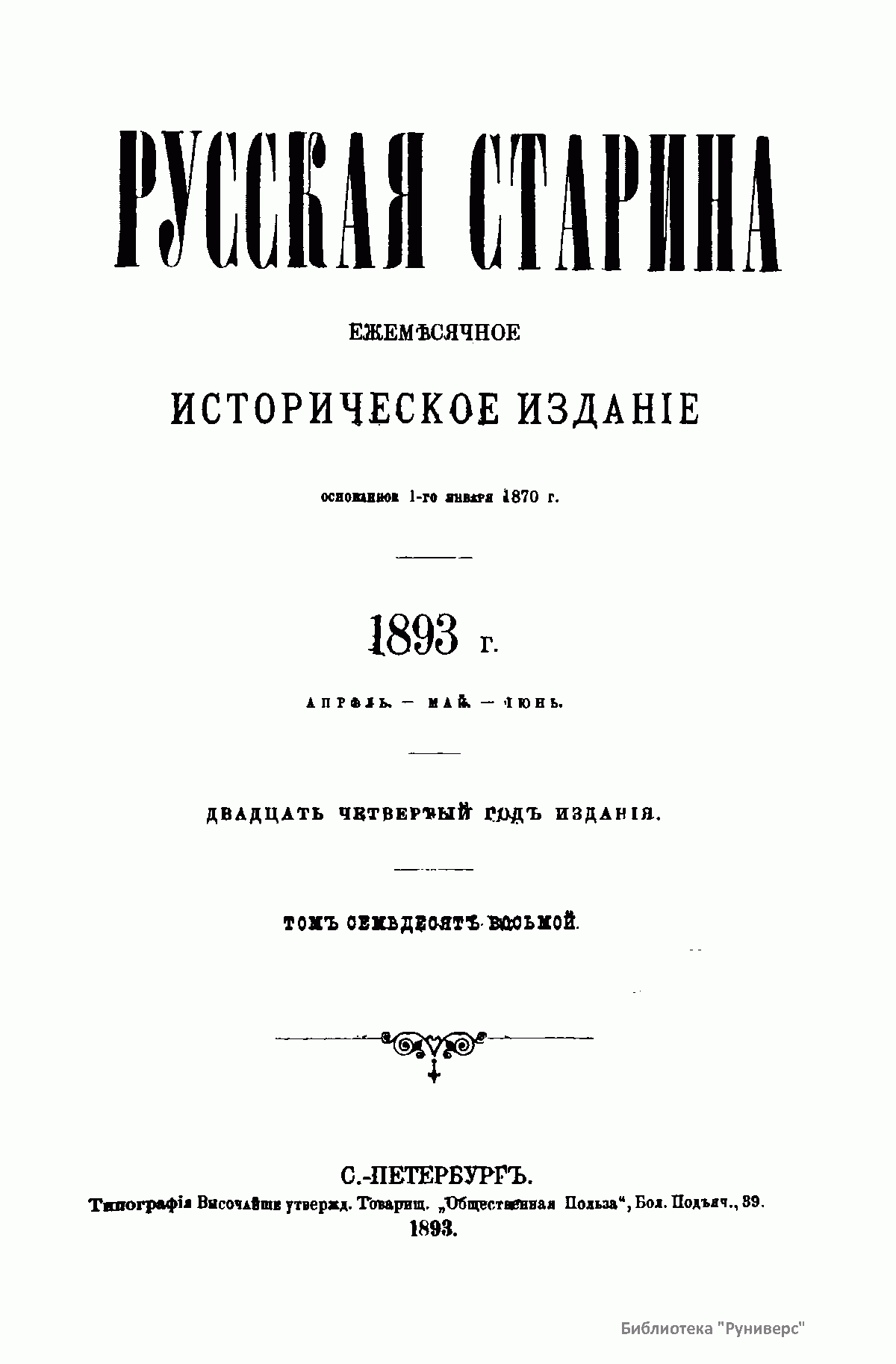 Русская старина. Том LXXVIII. 1893. Выпуски 4-6