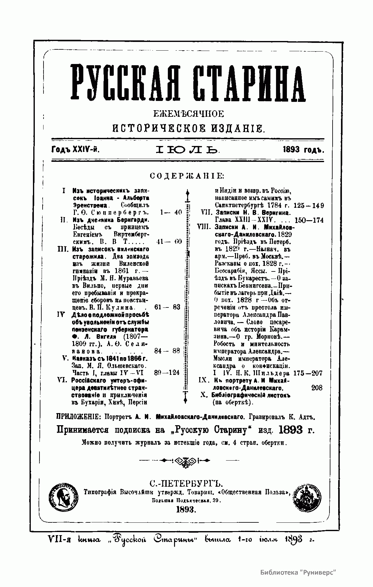 Русская старина. Томъ LXXIX. 1893. Выпуски 7-9
