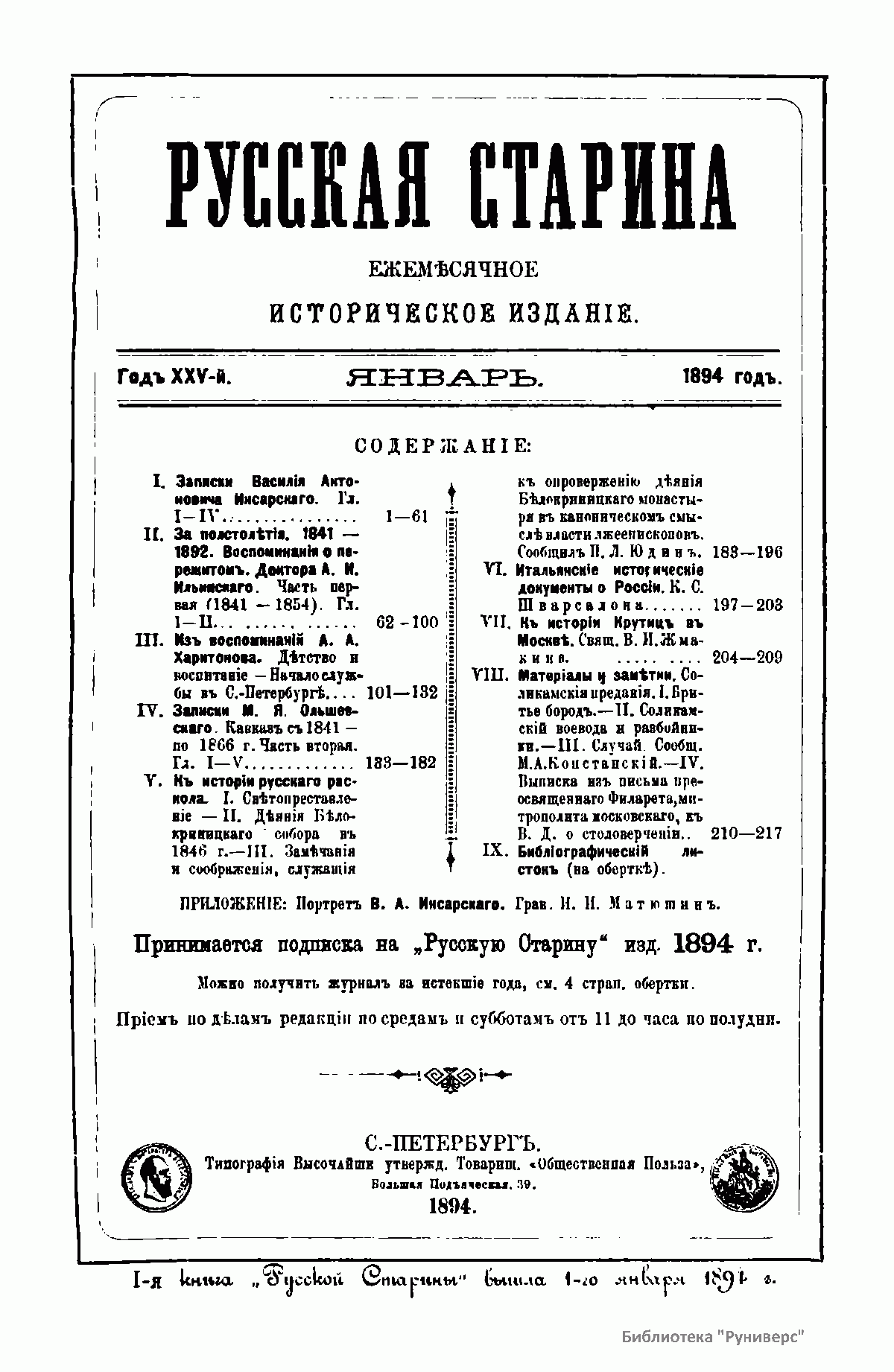 Русская старина. Томъ LXXXI. 1894. Выпуски 1-3