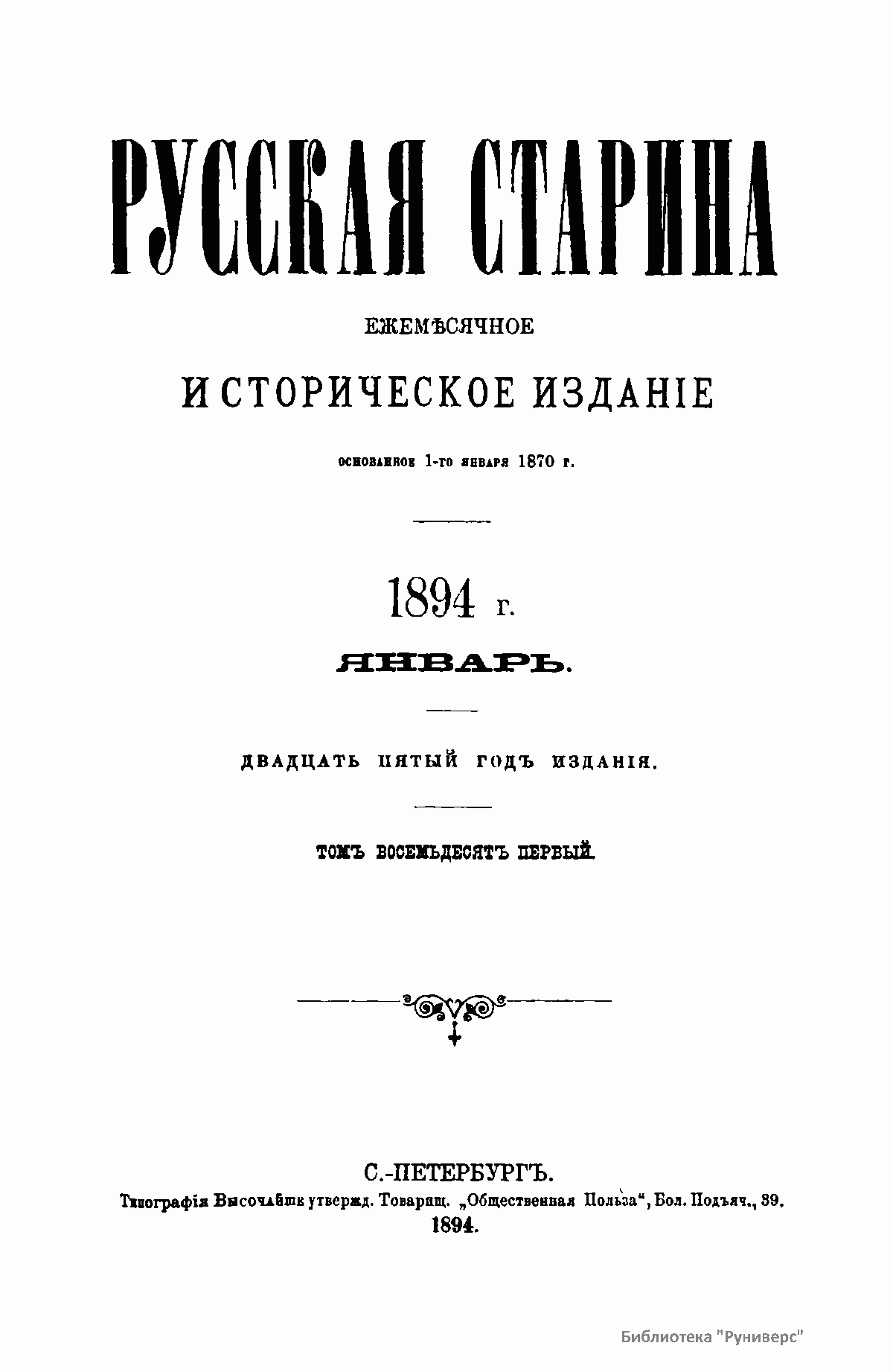 Русская старина. Том LXXXI. 1894. Выпуски 1-3