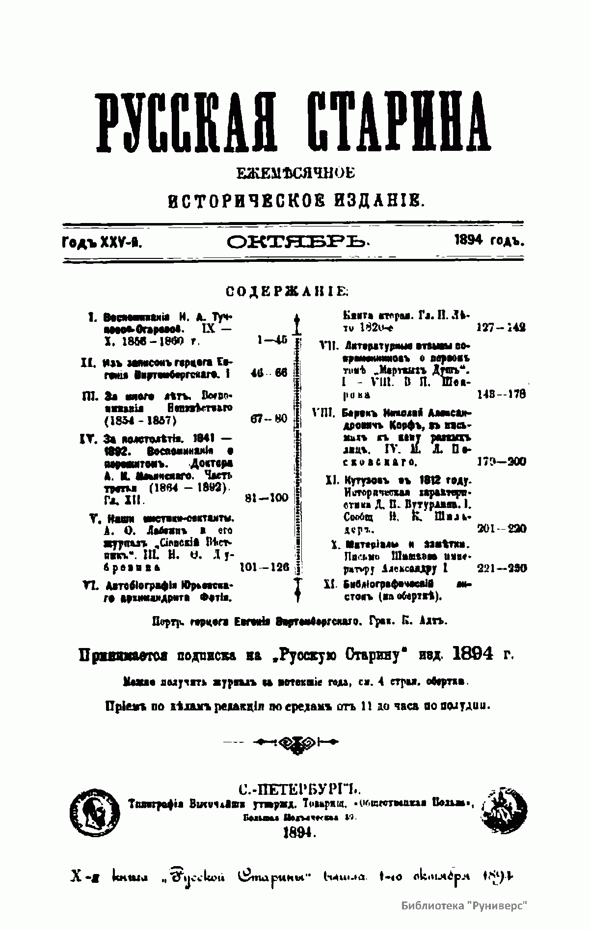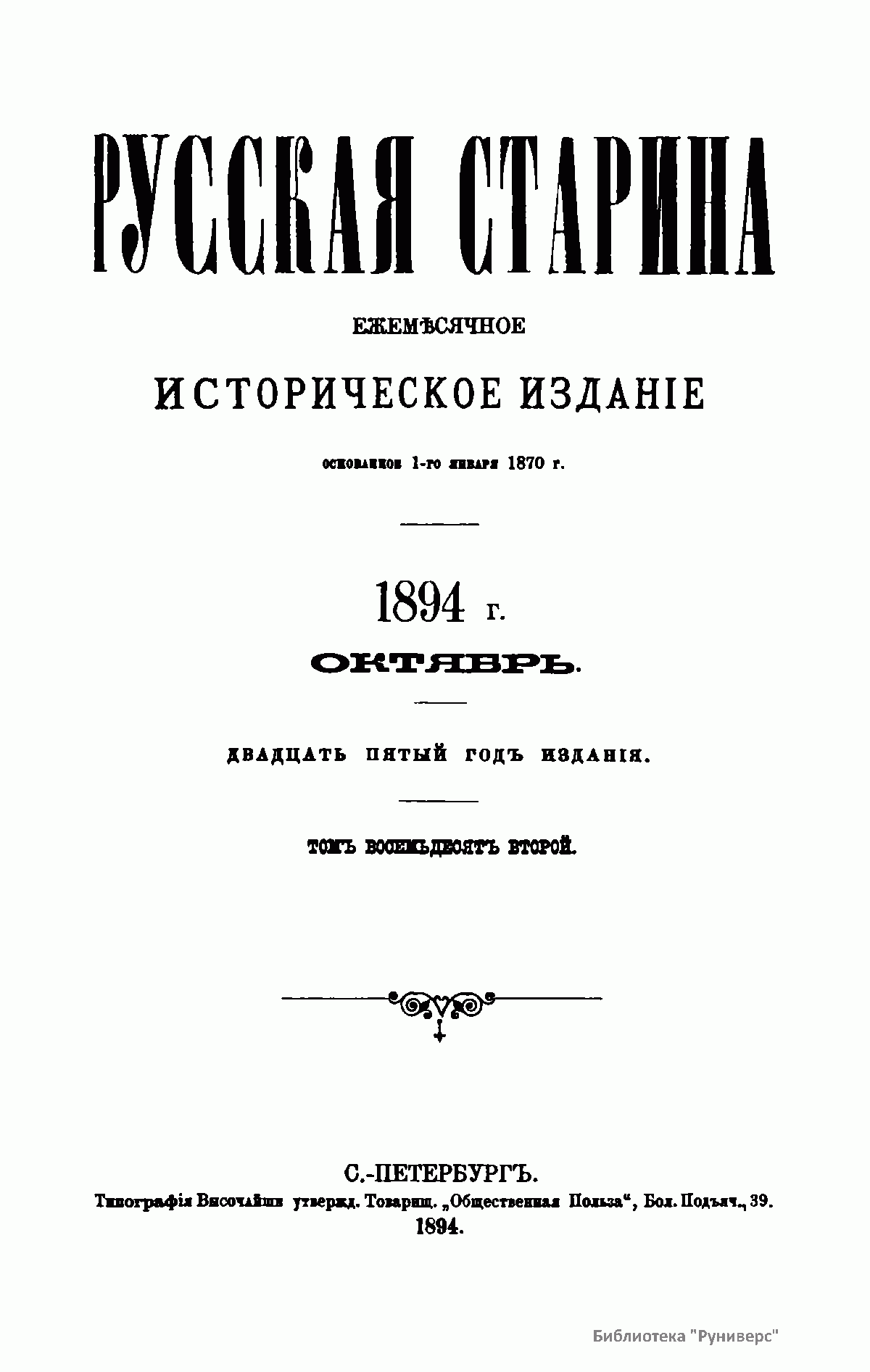 Русская старина. Том LXXXII. 1894. Выпуски 10-12