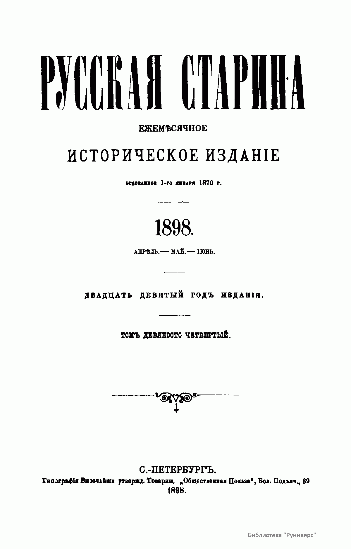 Русская старина. Томъ XCIV. 1898. Выпуски 4-6