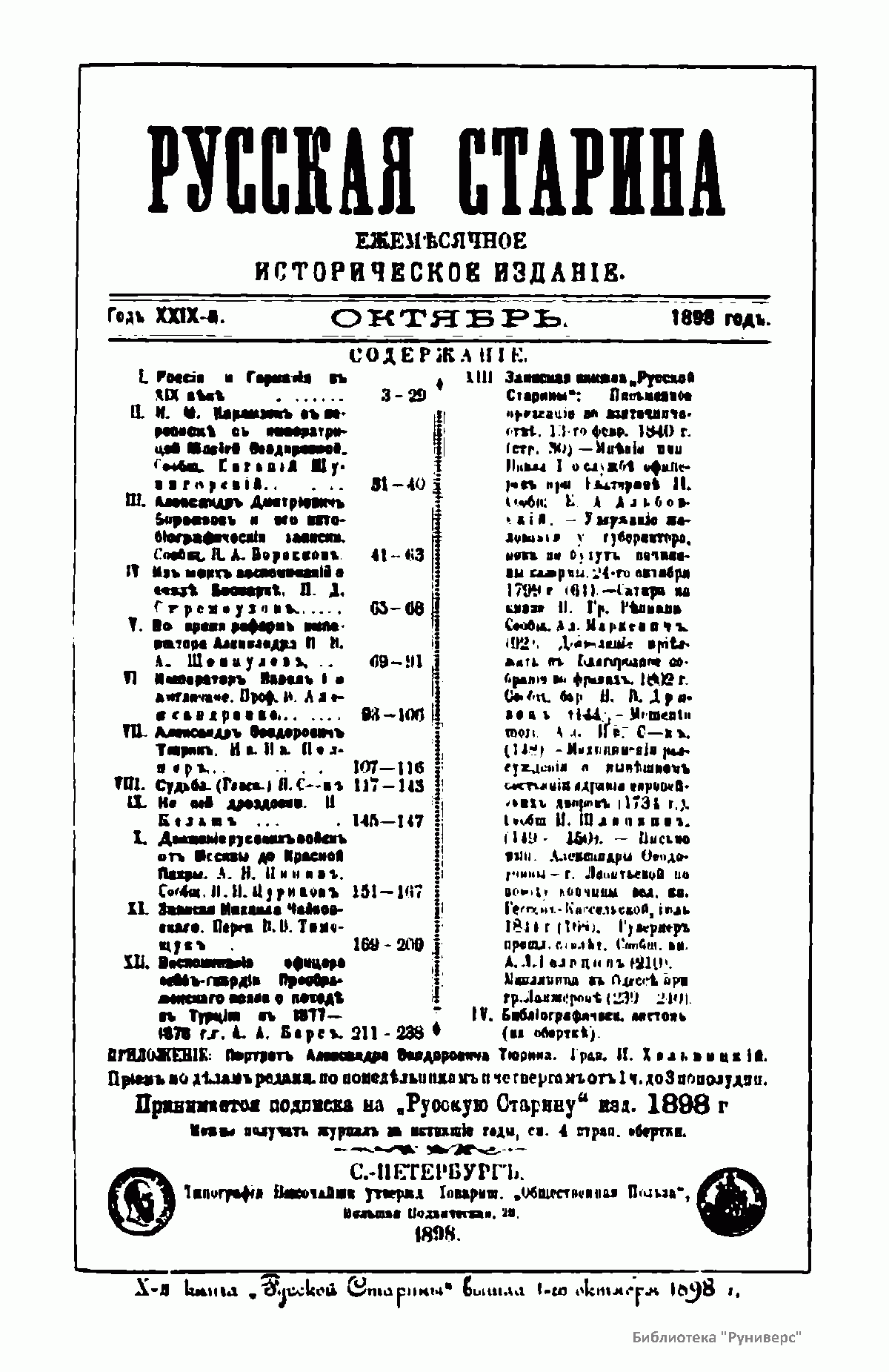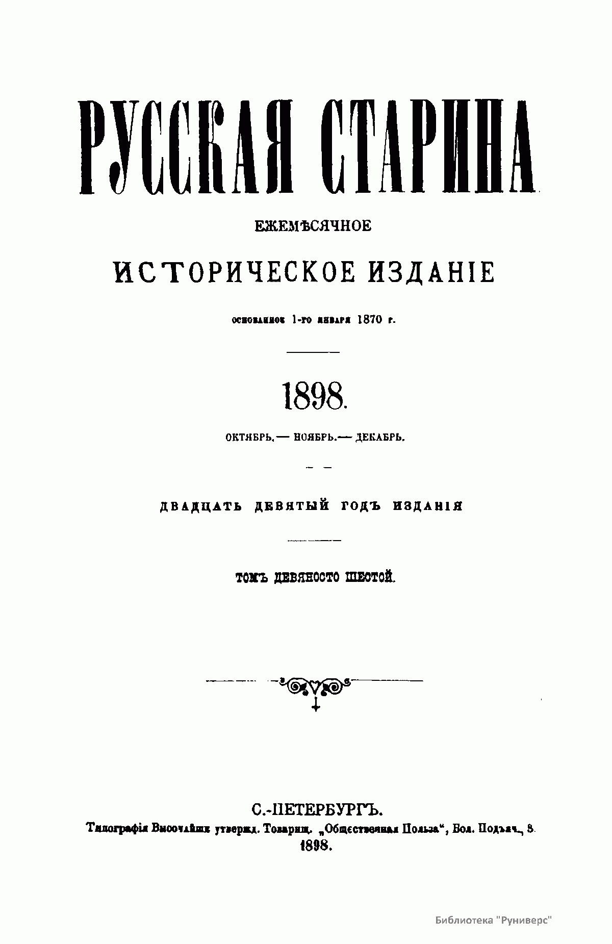 Русская старина. Том XCVI. 1898. Выпуски 10-12