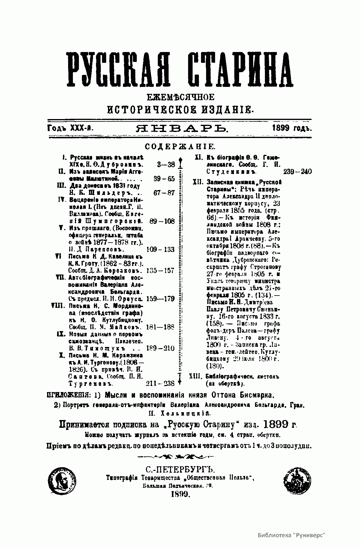 Русская старина. Томъ XCVII. 1899. Выпуски 1-3