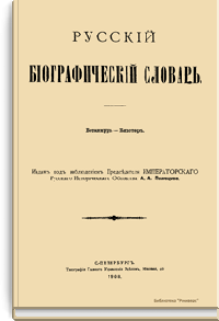 Русский биографический словарь (25 томов), в состав которого вошли имена и биографии виднейших деятелей государства, науки, просвещения и церковных деятелей, издавался Русским историческим обществом с 1896 по 1918 год. Русское историческое общество было основано в Санкт-Петербурге в 1866 году по инициативе известных отечественных историков, военных и государственных деятелей и ставило своей целью всесторонне содействовать развитию русского национального исторического просвещения. Общество пользовалось покровительством и финансовой поддержкой императорской семьи. Его деятельность носила археографический характер. Члены общества собирали исторические документы, которые публиковались в «Сборниках русского исторического общества». Всего до 1920 года (в этом году общество было закрыто) вышло 148 томов. Таким образом в научный оборот было введено большое количество документов XVIII – начала XIX века, ранее недоступных для исследователей, так как документальные материалы архивов царской России были для историков закрыты. К изданию русского биографического словаря, материалы которого до сих пор являются интереснейшим источником для исследователей, Общество приступило по инициативе императора Александра III. Тома биографического словаря выходили не в алфавитном порядке. С 1896 по 1909 год редактором словаря был руководитель Русского исторического общества, промышленник, член Сената Александр Александрович Половцев. Он выпустил 1, 2, 3, 6, 8, 12, 13, 14, 15, 18, 19, 21 и 22-й тома, поэтому этот словарь известен еще как «словарь Половцева».