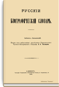 Русский биографический словарь (25 томов), в состав которого вошли имена и биографии виднейших деятелей государства, науки, просвещения и церковных деятелей, издавался Русским историческим обществом с 1896 по 1918 год. Русское историческое общество было основано в Санкт-Петербурге в 1866 году по инициативе известных отечественных историков, военных и государственных деятелей и ставило своей целью всесторонне содействовать развитию русского национального исторического просвещения. Общество пользовалось покровительством и финансовой поддержкой императорской семьи. Его деятельность носила археографический характер. Члены общества собирали исторические документы, которые публиковались в «Сборниках русского исторического общества». Всего до 1920 года (в этом году общество было закрыто) вышло 148 томов. Таким образом в научный оборот было введено большое количество документов XVIII – начала XIX века, ранее недоступных для исследователей, так как документальные материалы архивов царской России были для историков закрыты. К изданию русского биографического словаря, материалы которого до сих пор являются интереснейшим источником для исследователей, Общество приступило по инициативе императора Александра III. Тома биографического словаря выходили не в алфавитном порядке. С 1896 по 1909 год редактором словаря был руководитель Русского исторического общества, промышленник, член Сената Александр Александрович Половцев. Он выпустил 1, 2, 3, 6, 8, 12, 13, 14, 15, 18, 19, 21 и 22-й тома, поэтому этот словарь известен еще как «словарь Половцева».