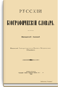 Русский биографический словарь (25 томов), в состав которого вошли имена и биографии виднейших деятелей государства, науки, просвещения и церковных деятелей, издавался Русским историческим обществом с 1896 по 1918 год. Русское историческое общество было основано в Санкт-Петербурге в 1866 году по инициативе известных отечественных историков, военных и государственных деятелей и ставило своей целью всесторонне содействовать развитию русского национального исторического просвещения. Общество пользовалось покровительством и финансовой поддержкой императорской семьи. Его деятельность носила археографический характер. Члены общества собирали исторические документы, которые публиковались в «Сборниках русского исторического общества». Всего до 1920 года (в этом году общество было закрыто) вышло 148 томов. Таким образом в научный оборот было введено большое количество документов XVIII – начала XIX века, ранее недоступных для исследователей, так как документальные материалы архивов царской России были для историков закрыты. К изданию русского биографического словаря, материалы которого до сих пор являются интереснейшим источником для исследователей, Общество приступило по инициативе императора Александра III. Тома биографического словаря выходили не в алфавитном порядке. С 1896 по 1909 год редактором словаря был руководитель Русского исторического общества, промышленник, член Сената Александр Александрович Половцев. Он выпустил 1, 2, 3, 6, 8, 12, 13, 14, 15, 18, 19, 21 и 22-й тома, поэтому этот словарь известен еще как «словарь Половцева».