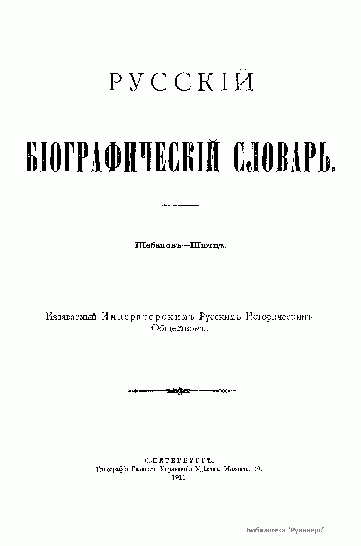 Русскiй бiографическiй словарь. Томъ XXIII. Шебановъ - Шютцъ