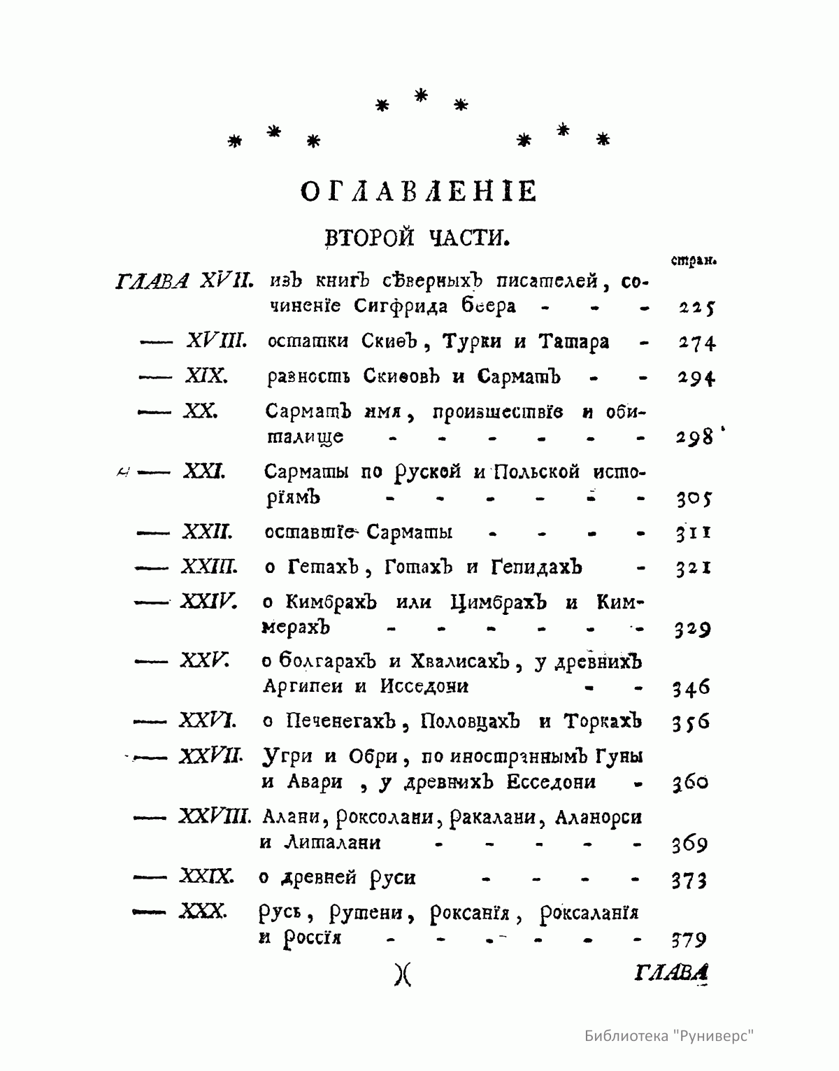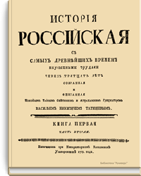 Исторiя Россiйская съ самыхъ древнѣйших временъ неусыпными трудами черезъ тритцать лѣтъ собранная и описанная покойным тайнымъ советникомъ и астраханскимъ губернаторомъ, Васильемъ Никитичемъ Татищевымъ. Книга первая. Часть вторая