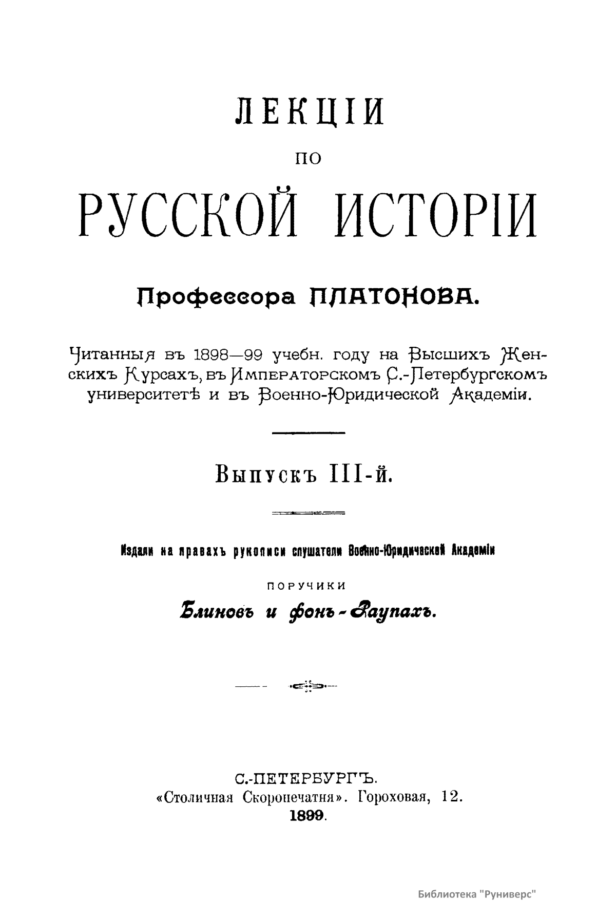 Лекцiи по русской исторiи Профессора Платонова. Выпускъ III-й