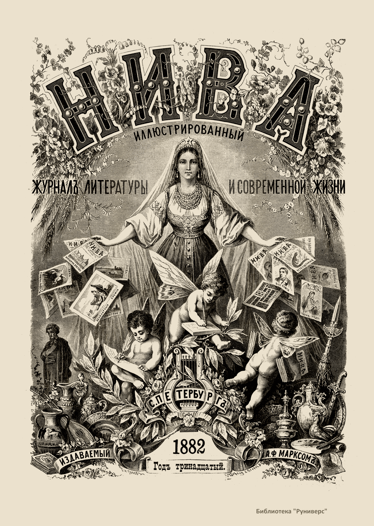 «Нива» — популярный еженедельный русский журнал с приложениями, издававшийся со второй половины XIX до начала XX века, носил подзаголовок «Журнал литературы, политики и современной жизни». Журнал был любимым детищем А. Ф. Маркса, возглавлявшего свое издательство вплоть до своей смерти в 1904 г. Позиционировалась «Нива» как иллюстрированный журнал для семейного чтения и был ориентирован, главным образом, на обывателя. В журнале публиковались литературные произведения, исторические, научно-популярные очерки, репродукции и гравюры картин современных художников. Материалы политического и общественного содержания также сопровождались многочисленными иллюстрациями. Среди известных литераторов, печатавшихся в журнале, были А. К. Толстой, Ф. И. Тютчев, Л. Н. Толстой, А. А. Фет, А. П. Чехов, Максим Горький, Корней Чуковский, Анна Ахматова, Иван Бунин и многие другие. Благодаря «Ниве» сочинения многих современных авторов добрались до самых отдаленных областей России.
