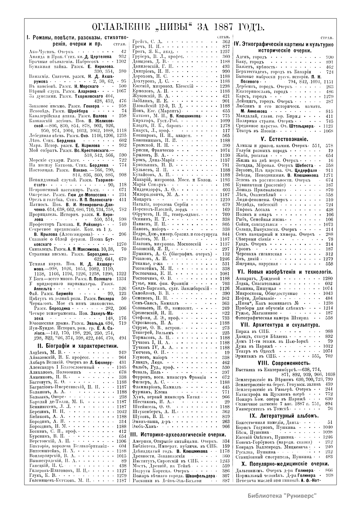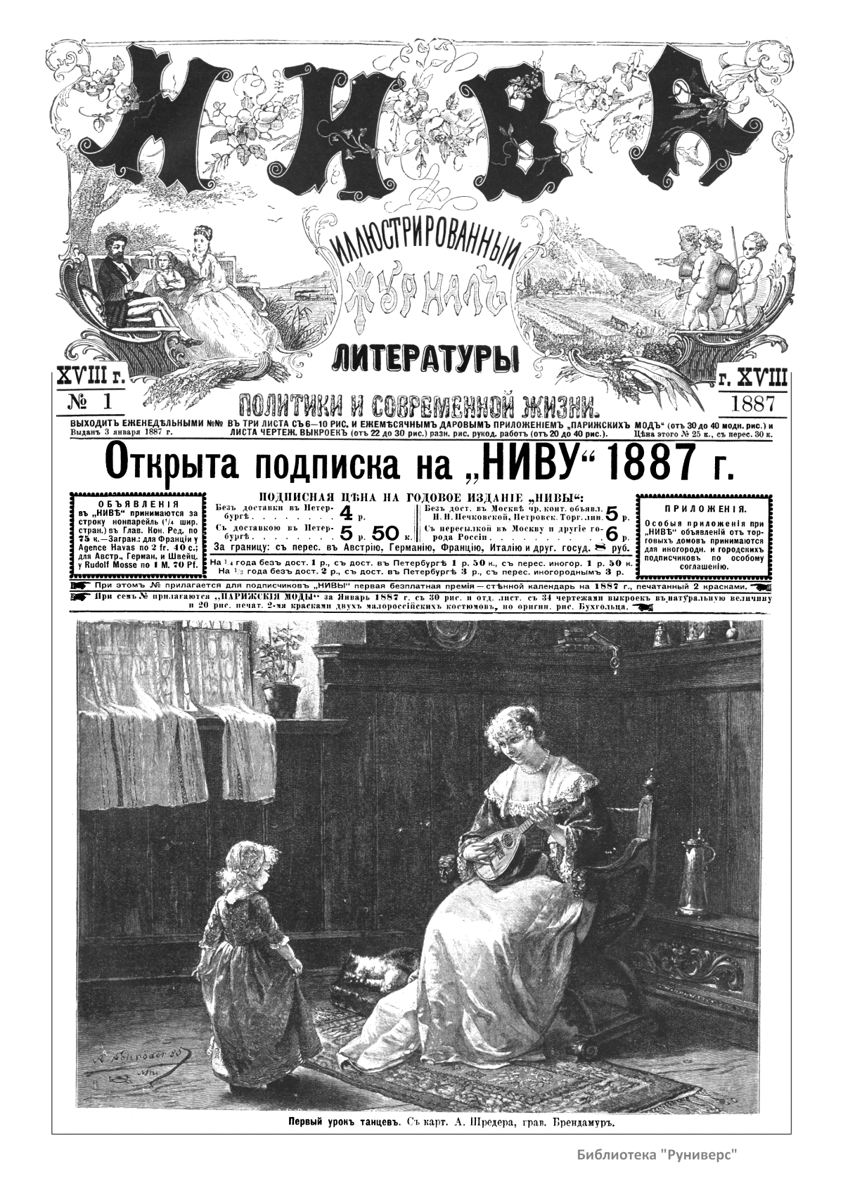 «Нива» — популярный еженедельный русский журнал с приложениями, издававшийся со второй половины XIX до начала XX века, носил подзаголовок «Журнал литературы, политики и современной жизни». Журнал был любимым детищем А. Ф. Маркса, возглавлявшего свое издательство вплоть до своей смерти в 1904 г. Позиционировалась «Нива» как иллюстрированный журнал для семейного чтения и был ориентирован, главным образом, на обывателя. В журнале публиковались литературные произведения, исторические, научно-популярные очерки, репродукции и гравюры картин современных художников. Материалы политического и общественного содержания также сопровождались многочисленными иллюстрациями. Среди известных литераторов, печатавшихся в журнале, были А. К. Толстой, Ф. И. Тютчев, Л. Н. Толстой, А. А. Фет, А. П. Чехов, Максим Горький, Корней Чуковский, Анна Ахматова, Иван Бунин и многие другие. Благодаря «Ниве» сочинения многих современных авторов добрались до самых отдаленных областей России.