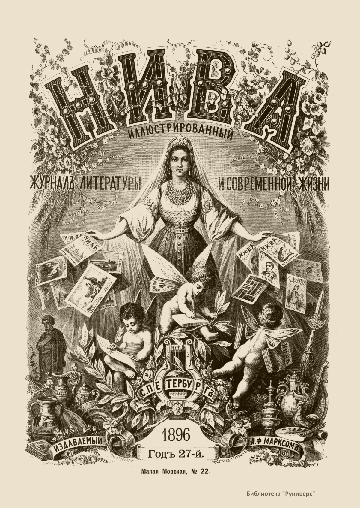 «Нива» — популярный еженедельный русский журнал с приложениями, издававшийся со второй половины XIX до начала XX века, носил подзаголовок «Журнал литературы, политики и современной жизни». Журнал был любимым детищем А. Ф. Маркса, возглавлявшего свое издательство вплоть до своей смерти в 1904 г. Позиционировалась «Нива» как иллюстрированный журнал для семейного чтения и был ориентирован, главным образом, на обывателя. В журнале публиковались литературные произведения, исторические, научно-популярные очерки, репродукции и гравюры картин современных художников. Материалы политического и общественного содержания также сопровождались многочисленными иллюстрациями. Среди известных литераторов, печатавшихся в журнале, были А. К. Толстой, Ф. И. Тютчев, Л. Н. Толстой, А. А. Фет, А. П. Чехов, Максим Горький, Корней Чуковский, Анна Ахматова, Иван Бунин и многие другие. Благодаря «Ниве» сочинения многих современных авторов добрались до самых отдаленных областей России.