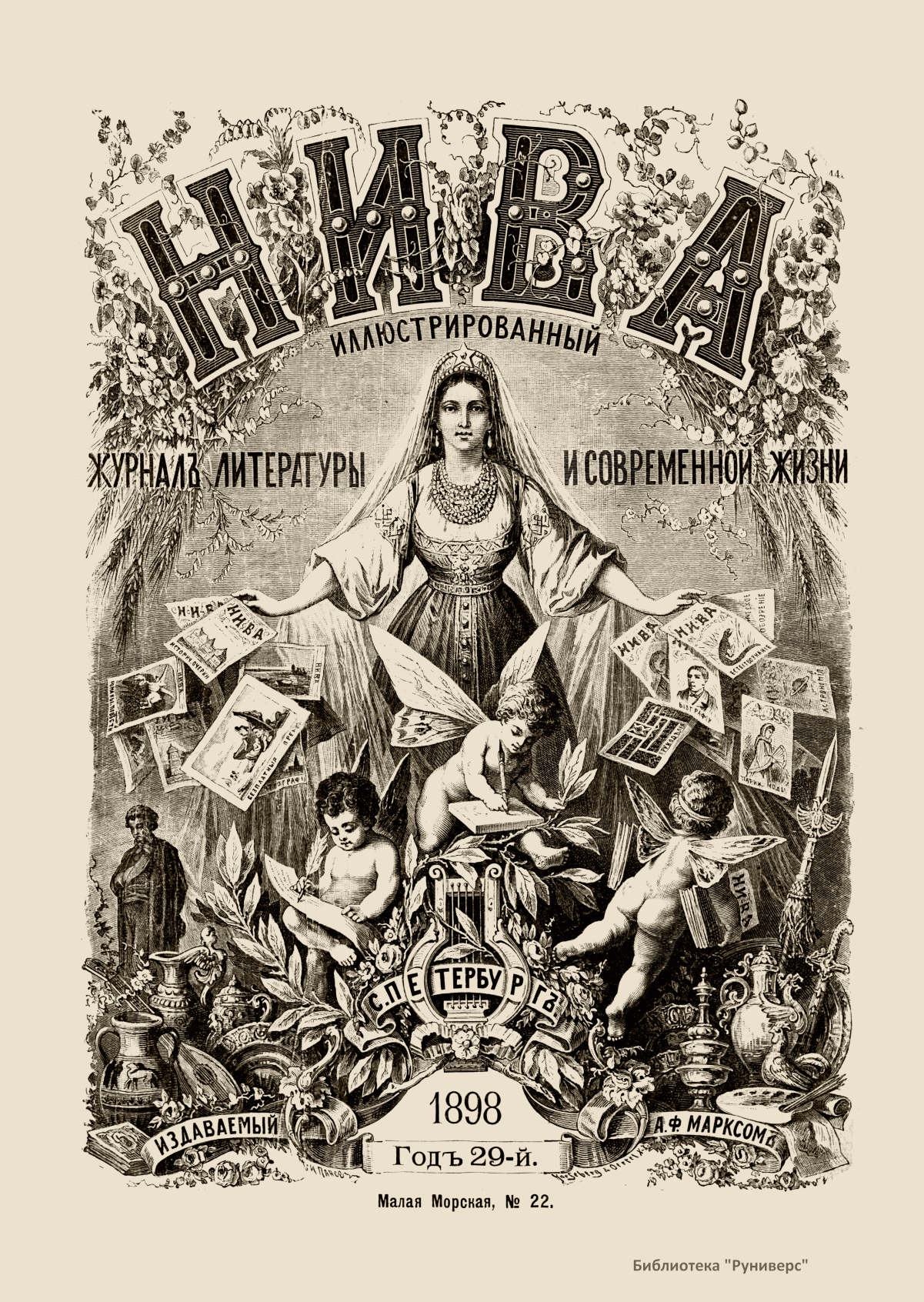 «Нива» — популярный еженедельный русский журнал с приложениями, издававшийся со второй половины XIX до начала XX века, носил подзаголовок «Журнал литературы, политики и современной жизни». Журнал был любимым детищем А. Ф. Маркса, возглавлявшего свое издательство вплоть до своей смерти в 1904 г. Позиционировалась «Нива» как иллюстрированный журнал для семейного чтения и был ориентирован, главным образом, на обывателя. В журнале публиковались литературные произведения, исторические, научно-популярные очерки, репродукции и гравюры картин современных художников. Материалы политического и общественного содержания также сопровождались многочисленными иллюстрациями. Среди известных литераторов, печатавшихся в журнале, были А. К. Толстой, Ф. И. Тютчев, Л. Н. Толстой, А. А. Фет, А. П. Чехов, Максим Горький, Корней Чуковский, Анна Ахматова, Иван Бунин и многие другие. Благодаря «Ниве» сочинения многих современных авторов добрались до самых отдаленных областей России.
