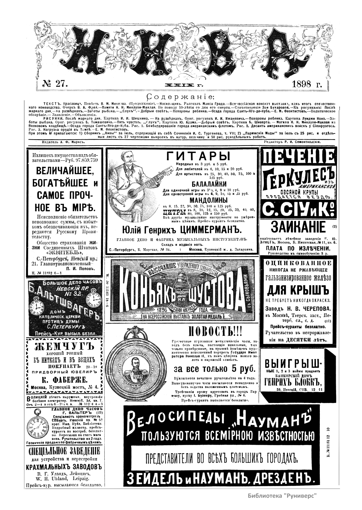 Нива. Годъ XXIX. №27-52. 1898