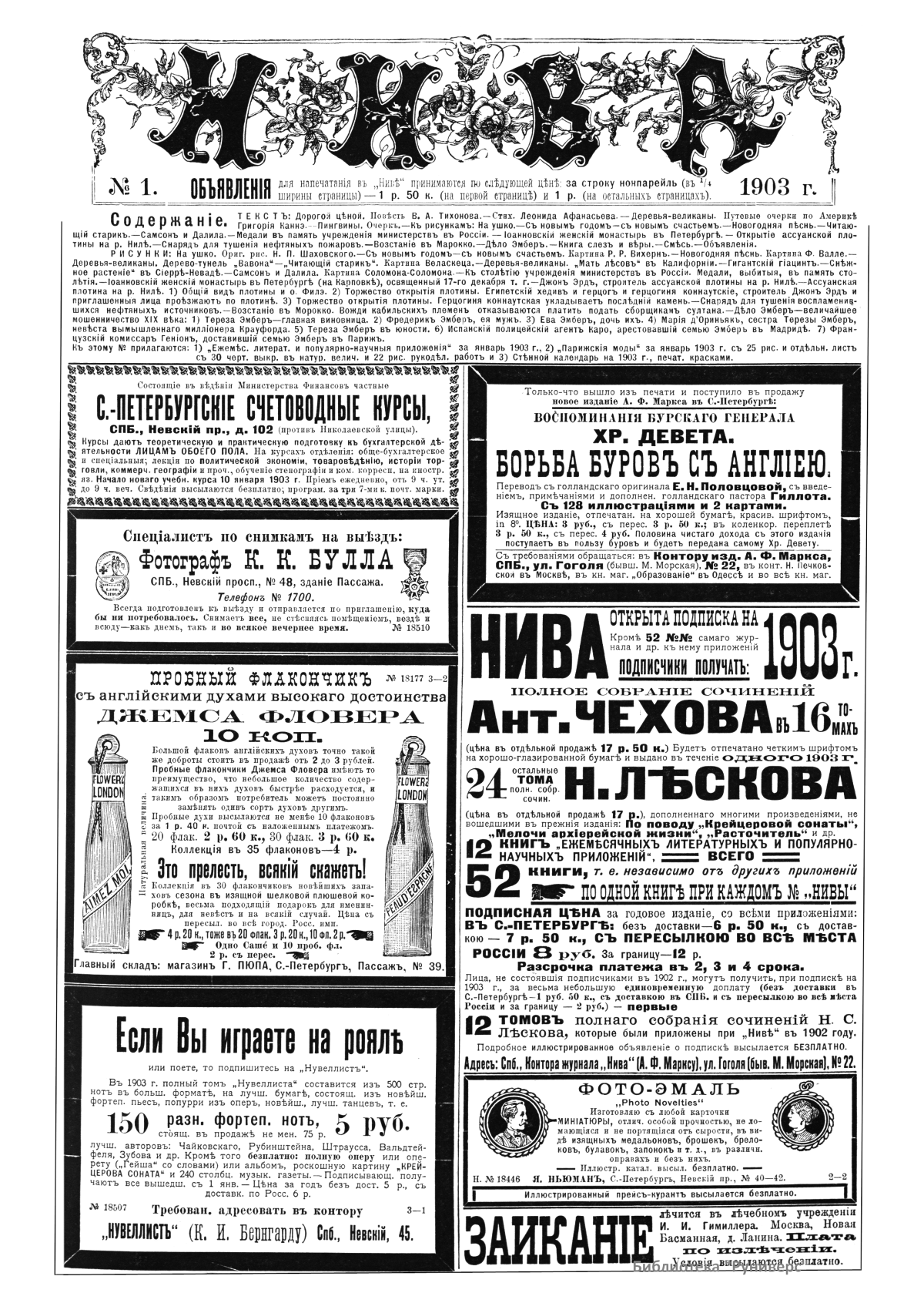 «Нива» — популярный еженедельный русский журнал с приложениями, издававшийся со второй половины XIX до начала XX века, носил подзаголовок «Журнал литературы, политики и современной жизни». Журнал был любимым детищем А. Ф. Маркса, возглавлявшего свое издательство вплоть до своей смерти в 1904 г. Позиционировалась «Нива» как иллюстрированный журнал для семейного чтения и был ориентирован, главным образом, на обывателя. В журнале публиковались литературные произведения, исторические, научно-популярные очерки, репродукции и гравюры картин современных художников. Материалы политического и общественного содержания также сопровождались многочисленными иллюстрациями. Среди известных литераторов, печатавшихся в журнале, были А. К. Толстой, Ф. И. Тютчев, Л. Н. Толстой, А. А. Фет, А. П. Чехов, Максим Горький, Корней Чуковский, Анна Ахматова, Иван Бунин и многие другие. Благодаря «Ниве» сочинения многих современных авторов добрались до самых отдаленных областей России.